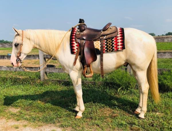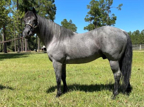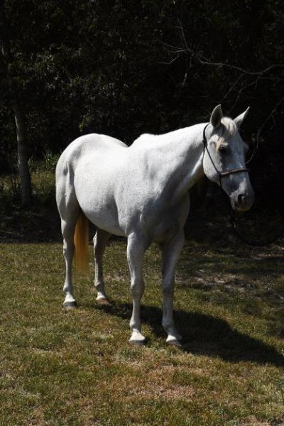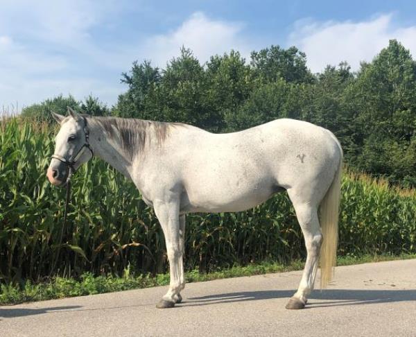 PURCHASED FROM BREEDER. This is a cute gray gelding that stands right at 14 hands. He had a late start but has an exceptional foundation. He rides quietly, is gentle and ready to go your way.