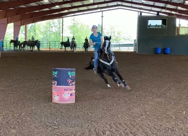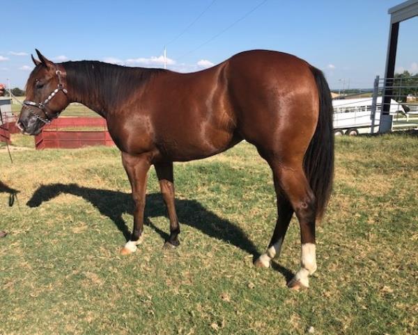 This mare is a weekend money earner. She was originally trained by Matt Gaines. She has another full year of limited age event eligibility and has super broodmare potential. In training with Bill McFarland. Will be shown on cattle sale day.
