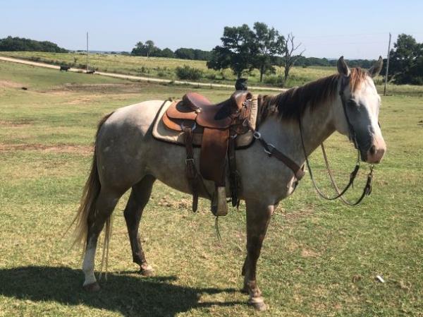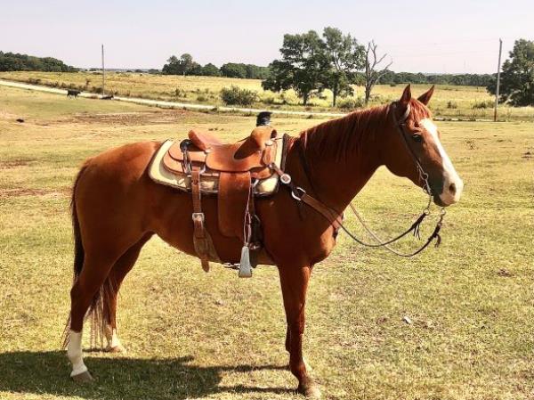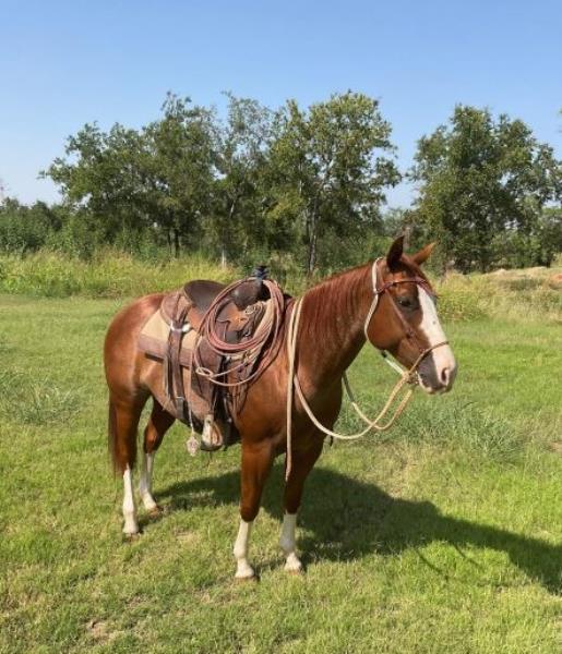 BREEDER. This is a head and heel horse that any level of roper can ride. She has been used outside to ranch on. She is little kid gentle with no buck and a really easy, good traveling horse that aims to please. Will be shown in the team roping preview. FMI (580) 618-4858.