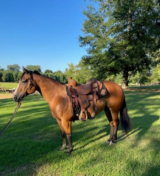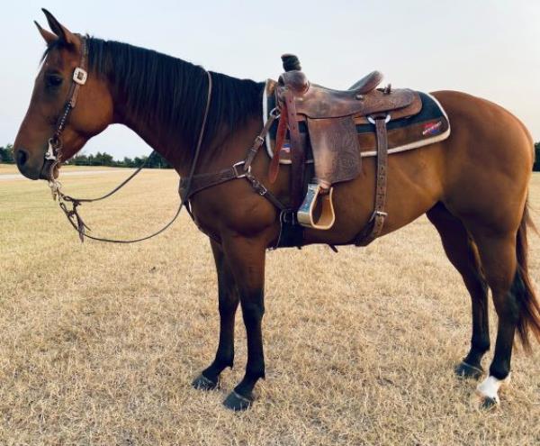 This is a finished head and heel horse that was also started as a cutter. He has been shown in AQHA heeling and working cow horse. In training with Brian Jackson. FMI (405) 556-0786.