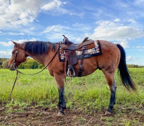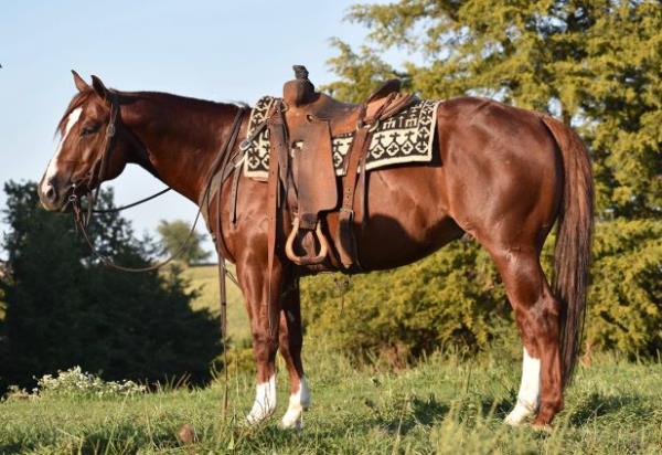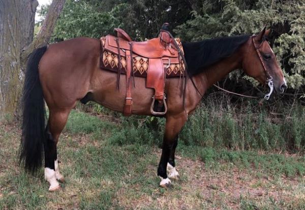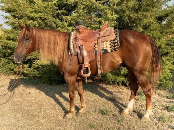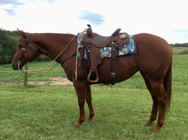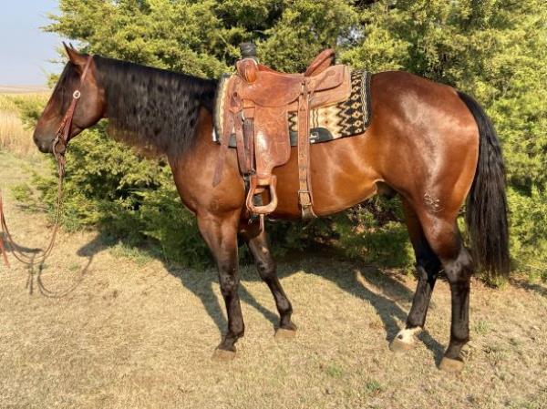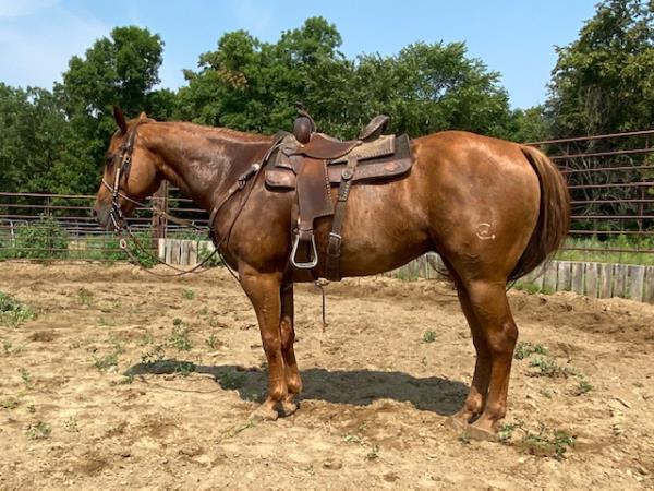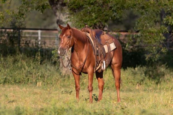 PURCHASED FROM BREEDER. A pretty mover who has made numerous trips to the AQHA Youth World and placed high in L1 Cow Horse and Ranch Riding. He has also been to the AQHA VRH World and Ranching Heritage Finals where he's consistently been in the Top 10 of his classes. At the Affiliate Level he's a 3-time High Point Youth All Around Horse in KQHA. He is lightly started in team roping and has been shown in Ranch Heritage Challenge Ropings. As a ranch horse, he has done everything you can ask outside - gather, sort, rope and doctor. In training with Ryan Cole. AQHA Ranching Heritage Challenge.
