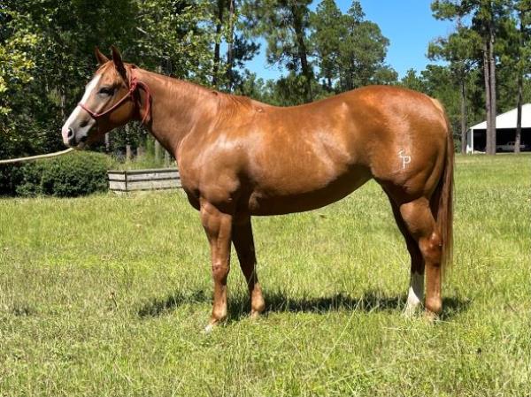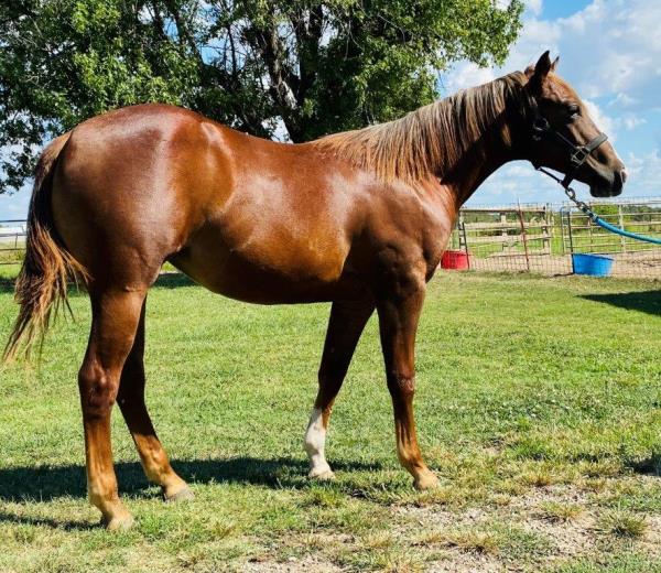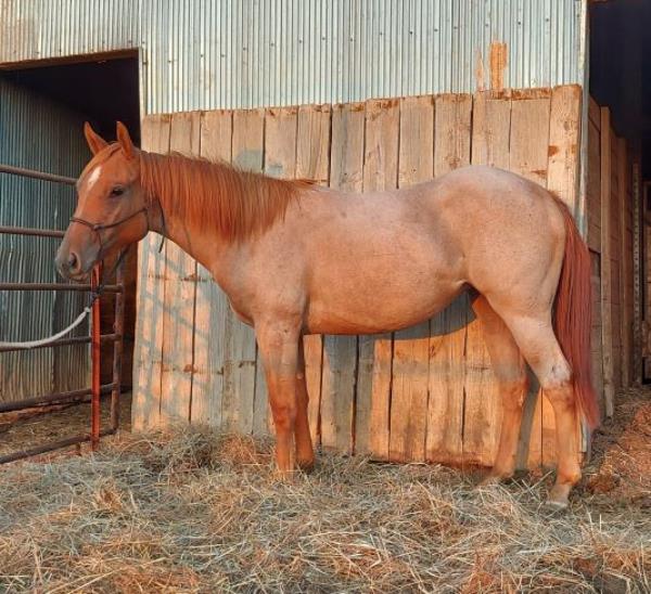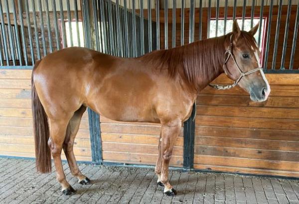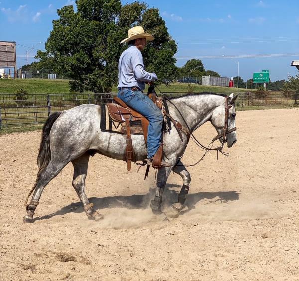 BREEDER. This big strong gelding has plenty of motor. He's gathered cattle and been in cutting training since January 2021. He would make an excellent rope or barrel prospect. In training with Tell Rentz.