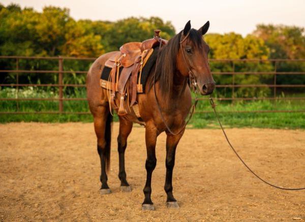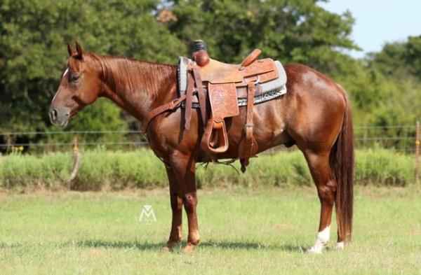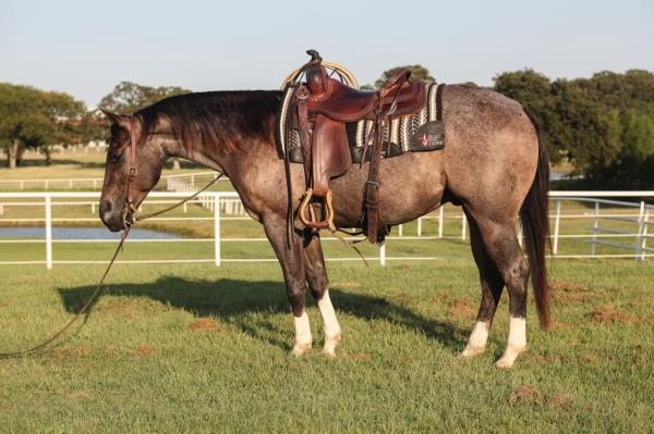 PURCHASED FROM BREEDER. Horses like "Marion" don't come along everyday! This pretty mare is ready to go win. She has two years of cow horse/roping training and is cowy and athletic. She has a bright future in cow horse, roping or versatility ranch events as well as top broodmare potential. In training with Ben Baldus. 5-Panel N/N. AQHA Ranching Heritage Challenge eligible. Will be shown in the ranch boxing/roping preview.