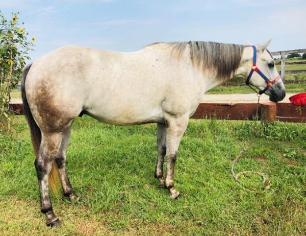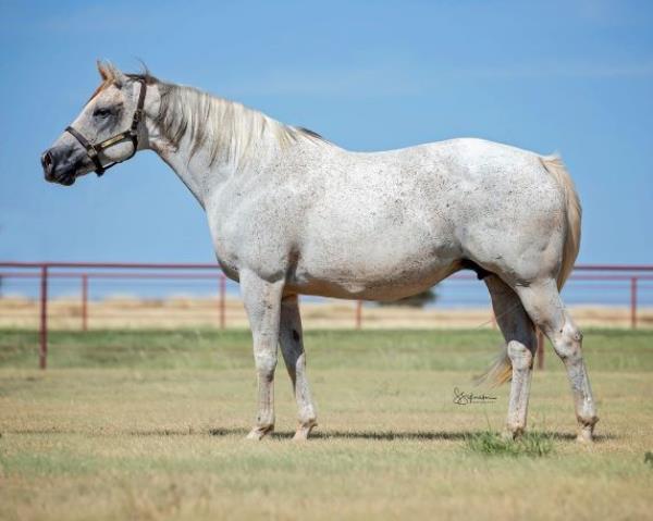 This is a nice gray mare that was bred by the Harrison Ranch of West Texas. She is in foal to the "Iceman" without a return breeding. 5-Panel N/N. FMI (812) 525-7433 Sells BRED June 5, 2021 to SG FROZEN ENTERPRIZE.