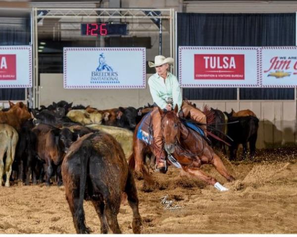 BREEDER. She is well started, strong and intelligent. She can go in any direction. In training with Tarin Rice. 5-Panel N/N. NCHA Super Stakes nominated. Breeders Invitational eligible. Will be shown on cattle sale day.