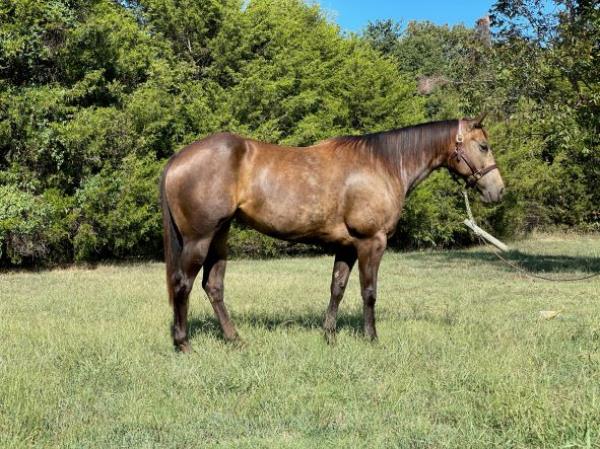 This mare is very kind to be around. She has been ridden outside. She has been started in calf roping and has had calves tied down on her. She can really run. Future Fortunes, BBR Select Stallion Stakes, Triple Crown 100. Will be shown in the calf roping preview. FMI (817) 999-5665