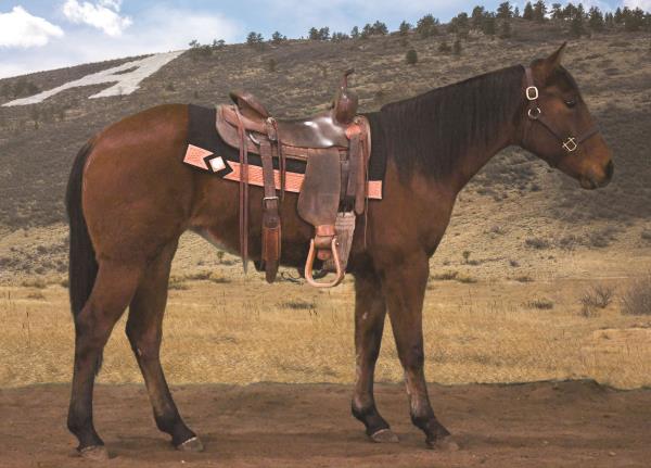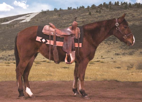 Her sire is SNW HEAVENS KING, Black Hills Stock Show Ranch Horse Ladies Rancher Open Reserve Champion. An RGP Top 25 All-Time Sire of Ranch Riding & Ranch Horse Money-Earners. Sire of 7 money-earners, including BOXO HEAVENS FIREFLY ($3,310 and 187 AQHA points: NSBA World Ranch Trail Non-Pro Reserve Champion; Superior Ranch Riding), BOXO HEAVENS JOSIE ($5,081 and 6.5 AQHA points: 4th AQHA Ranching Heritage Finals 4-Year-Old Working Ranch Horse Limited Open), BOXO HEAVENS ANGEL ($4,466 and 26.5 AQHA points: AQHA Ranching Heritage Finals 4-Year-Old & Over Amateur Working Ranch Horse Reserve Champion). Her dam is COLONEL WITH CLASS. Dam of 6 AQHA foals. A granddaughter of COLONEL BOOTS BAR, NCHA money-earner and an AQHA point-earner and sire of 10 money-earners, including COLONEL MS SOCKS ($14,687: South Dakota CHA 4-Year-Old Non-Pro Champion), COLONEL BUGS BAR ($5,732: 4th Congress Spring Spectacular Bridleless Cutting Open), COLONEL JESSICA DOC ($4,856: NCHA Certificate of Ability), COLONEL DANI ($3,864: CHA Nebraska Breeders Open Futurity Champion).