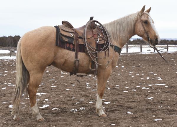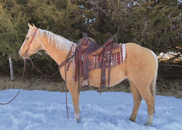 Her sire is SNW HEAVENS KING, Black Hills Stock Show Ranch Horse Ladies Rancher Open Reserve Champion. An RGP Top 25 All-Time Sire of Ranch Riding & Ranch Horse Money-Earners. Sire of 7 money-earners, including BOXO HEAVENS FIREFLY ($3,310 and 187 AQHA points: NSBA World Ranch Trail Non-Pro Reserve Champion; Superior Ranch Riding), BOXO HEAVENS JOSIE ($5,081 and 6.5 AQHA points: 4th AQHA Ranching Heritage Finals 4-Year-Old Working Ranch Horse Limited Open), BOXO HEAVENS ANGEL ($4,466 and 26.5 AQHA points: AQHA Ranching Heritage Finals 4-Year-Old & Over Amateur Working Ranch Horse Reserve Champion). Her dam is ACES LUCKY JEWEL. Dam of 5 AQHA foals. A granddaughter of FROSTY FEATURE SI 81, 93 AQHA points: 6th AQHA World Aged Halter Stallion; Superior Halter, Race winner; sire of 20 AQHA point-earners, including CANDY BAR FROST (121 AQHA points: AQHYA World Champion Stake Racing Horse), FEATURE ME FROSTY (177 AQHA points; Superior Youth Equitation), FEATURE HANK (76 AQHA points: Open Perf. ROM).