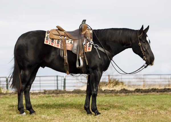 This gelding has a 150 days of professional training, 100 days with Arlan Kannas. He is very gentle and has never bucked. We have used a rope and a bull whip on him with no problems. He is a future kid horse, and keeps well on pasture with other geldings. 5 Panel N/N..