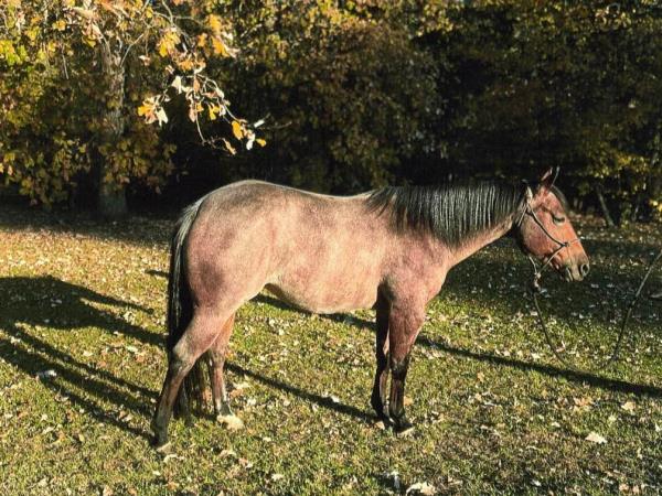"Boston" is a nice team penning and ranch sorting mare with a good handle and a big stop. She has been ridden in the rough country of Arizona, in the mountains, over fallen logs and through creeks. She is a smooth ride, is safe for the entire family and gets along well with other horses. She is broke and stays that way. "Boston" is good to shoe, clip, bathe and tie. Will be shown on cattle sale day.