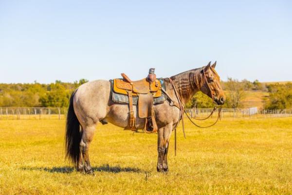 "Captain" is making a real nice heel horse. He is gentle enough for anybody to ride. My wife has used him all over the ranch. He is pretty, gentle and ready to go rope on. Registered with the American DNA Registry. Will be shown in the team roping preview by Clay Logan. FMI 806-202-4582 or 817-304-1124.