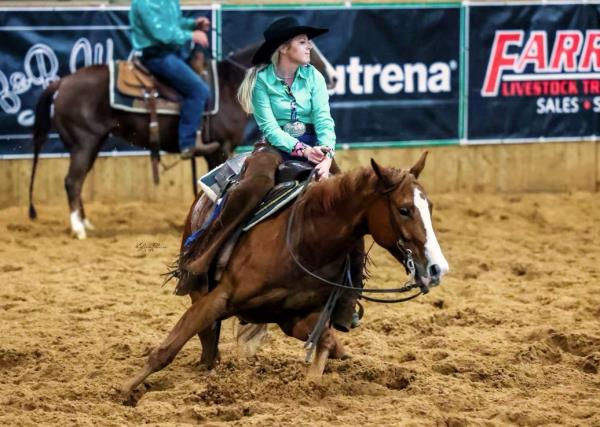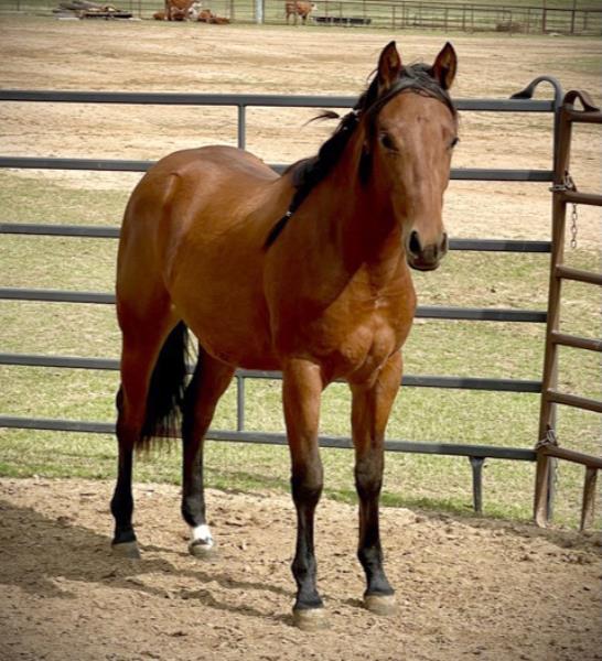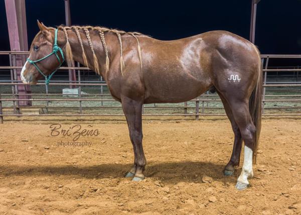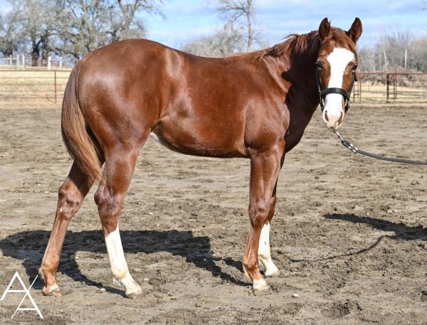 NOTES: This is a good-minded filly that is on track for a futurity horse. A very pretty mover, she is good to ride out in the pasture and to gather cows. In training with Paul Waters.