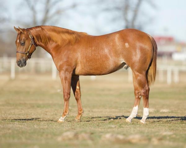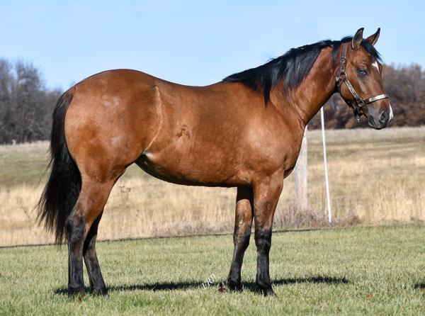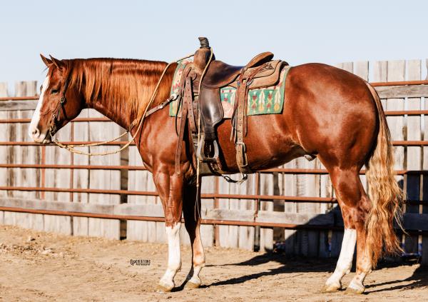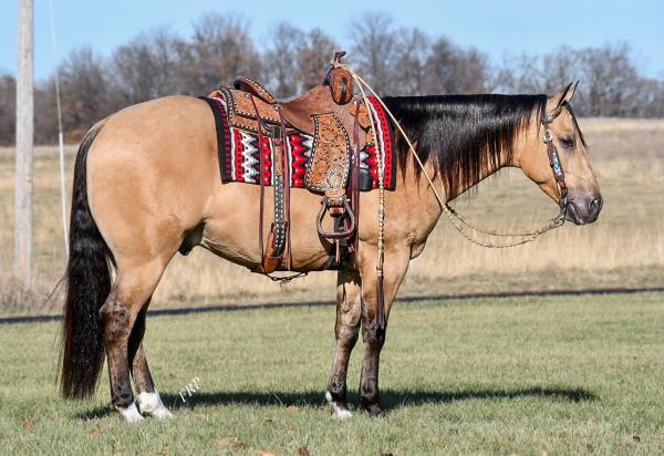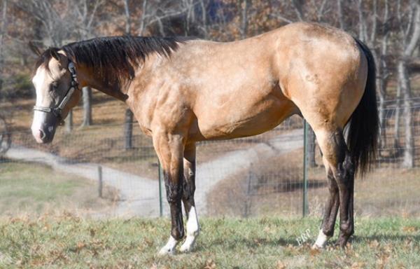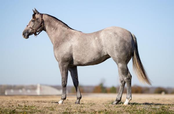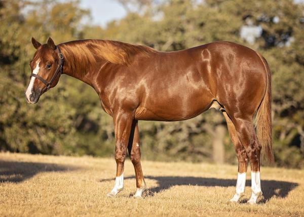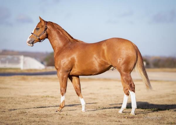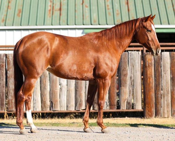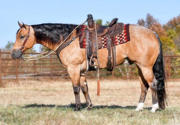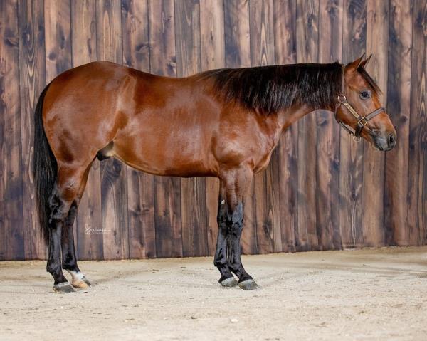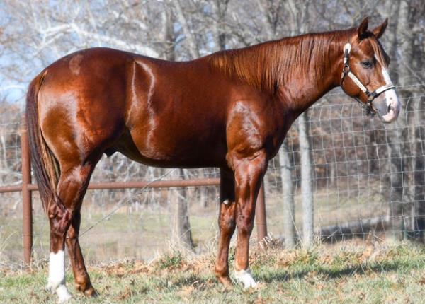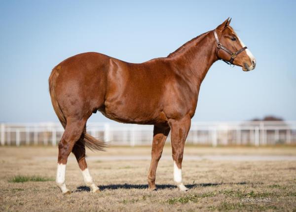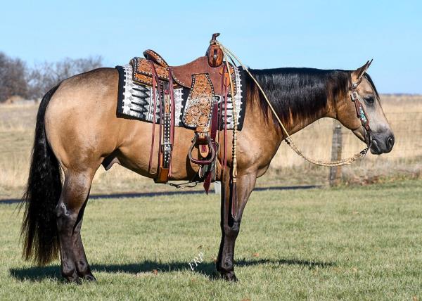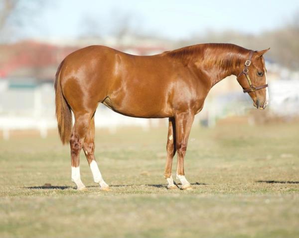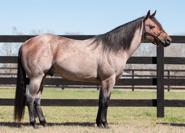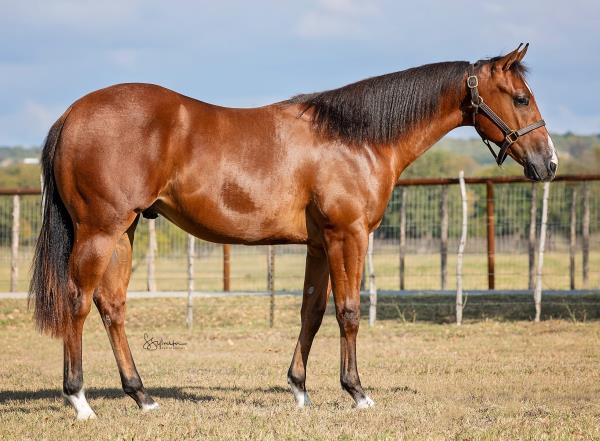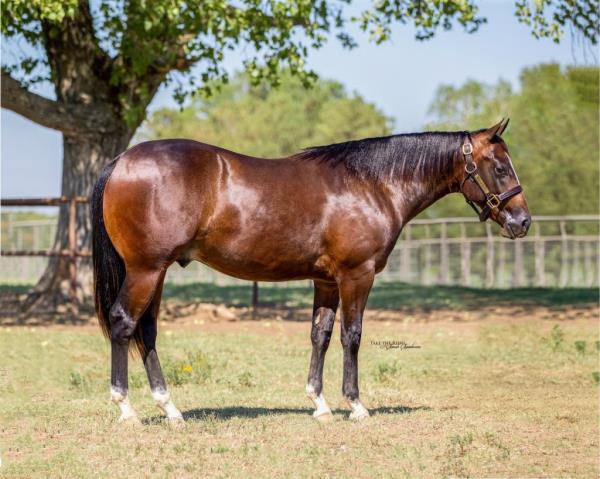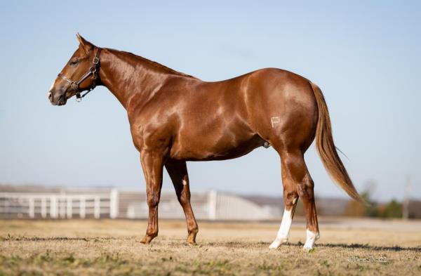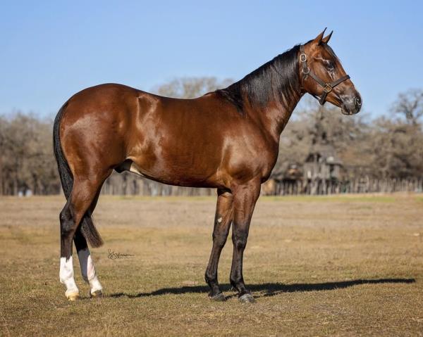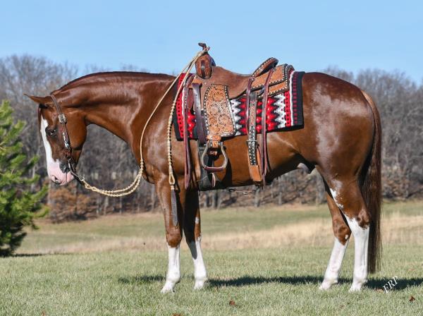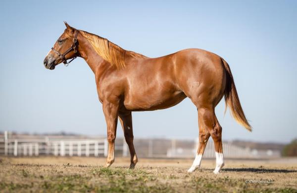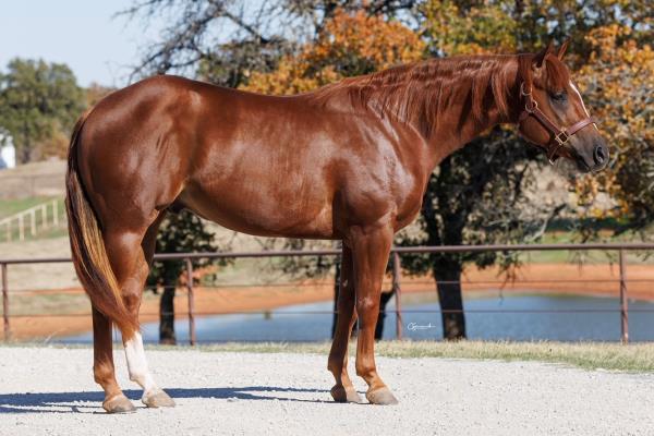 NOTES: Standout stallion that will turn heads. He has placed in the 1D and 2D with limited hauling. Always ready to work, he hauls great with mares and geldings and acts like a gentleman, not studdy. Can be turned out with geldings. Easy to run, point and kick. Recently hauled more and handled all the ground conditions and different setups with ease. Nothing phases him, whether it's livestock or loud music. Would make a standout rodeo horse and easy enough for youth to ride/run. Great conformation, straight legs and is built to last. He adds height, a good mind, length of stride and speed to his foals and is passing on his willing, laid-back personality. This stallion will be derby eligible. Will be shown in the barrel horse preview. Pink and Ruby Buckle, Royal Crown, Future Fortunes, 5 States Breeders Futurity, VGBRA, Colorado Classic, Cowboys State Stallion Incentive, Gridiron and Riata Buckle. 5-Panel N/N.