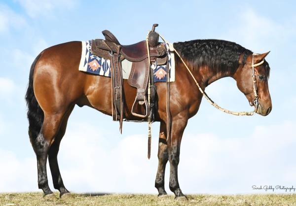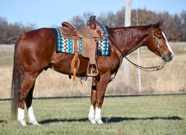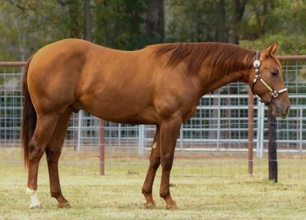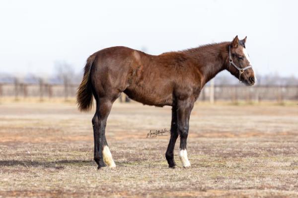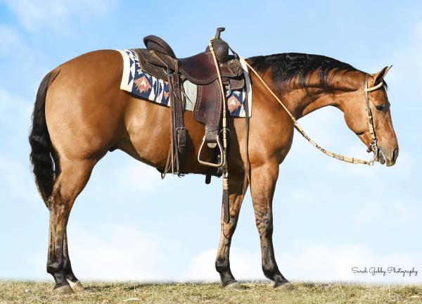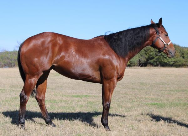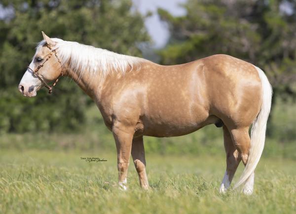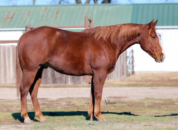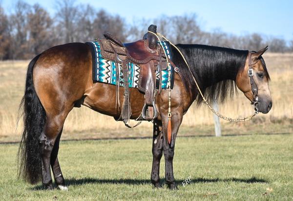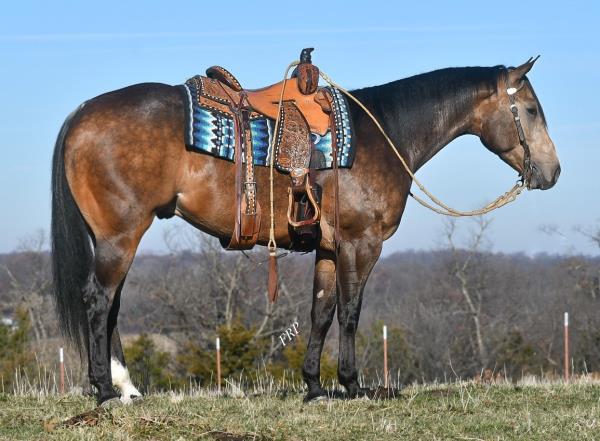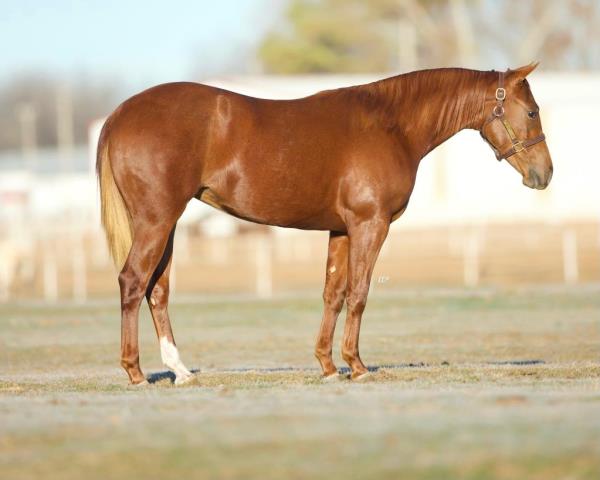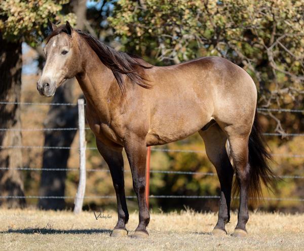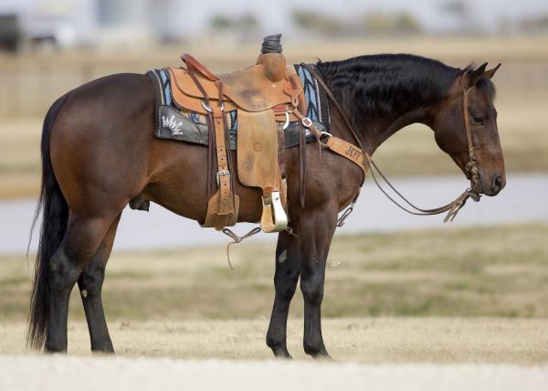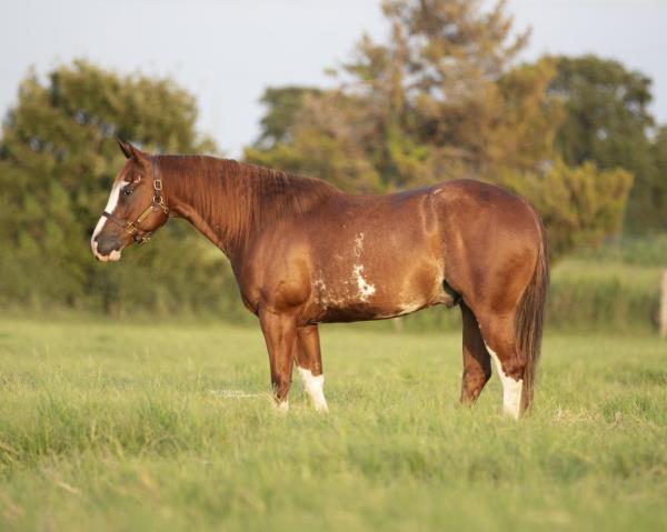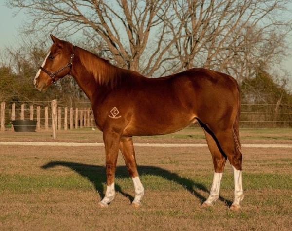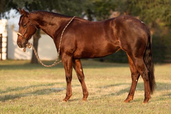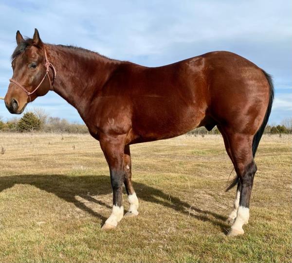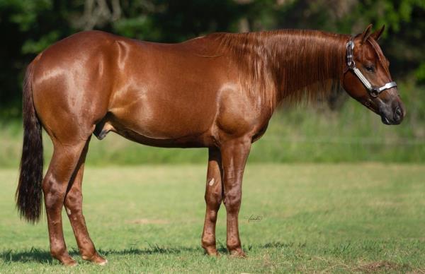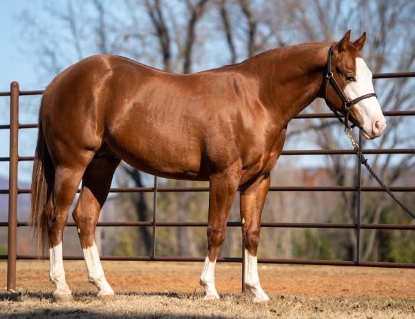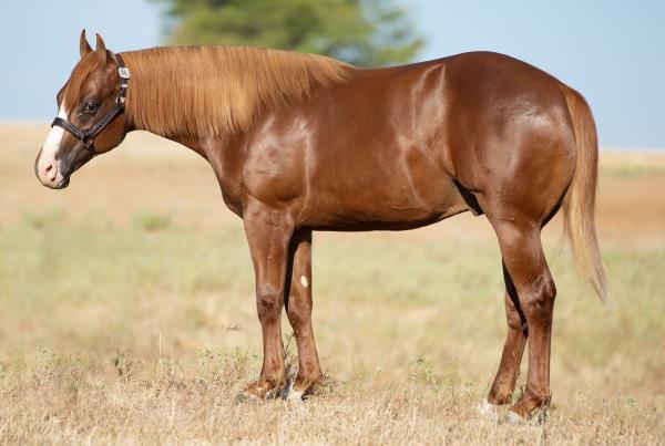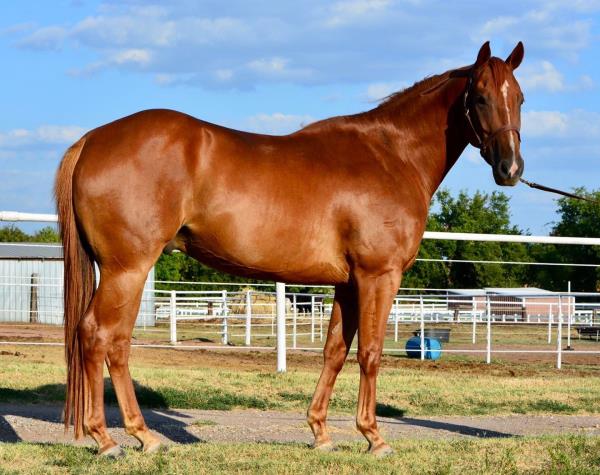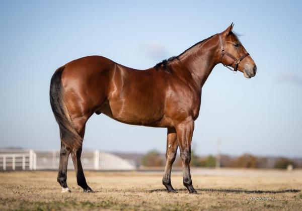 NOTES: Standout stallion that will turn heads. He has placed in the 1D and 2D with limited hauling. Always ready to work, he hauls great with mares and geldings and acts like a gentleman, not studdy. Can be turned out with geldings. Easy to run, point and kick. Recently hauled more and handled all the ground conditions and different setups with ease. Nothing phases him, whether it's livestock or loud music. Would make a standout rodeo horse and easy enough for youth to ride/run. Great conformation, straight legs and is built to last. He adds height, a good mind, length of stride and speed to his foals and is passing on his willing, laid-back personality. This stallion will be derby eligible. Will be shown in the barrel horse preview. Pink and Ruby Buckle, Royal Crown, Future Fortunes, 5 States Breeders Futurity, VGBRA, Colorado Classic, Cowboys State Stallion Incentive, Gridiron and Riata Buckle. 5-Panel N/N.