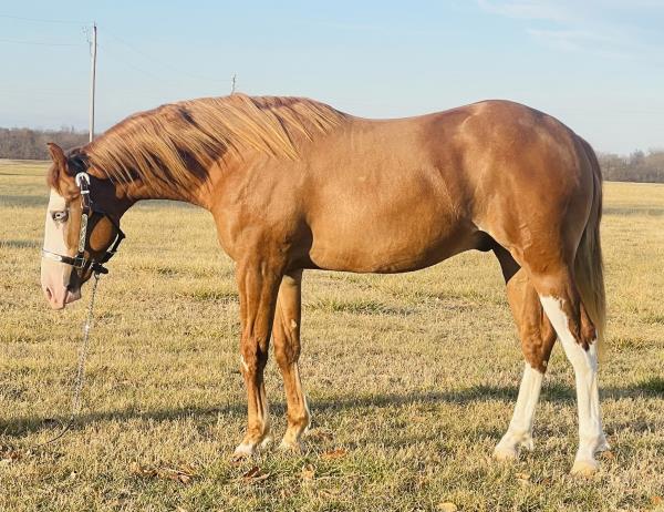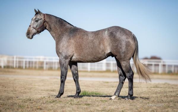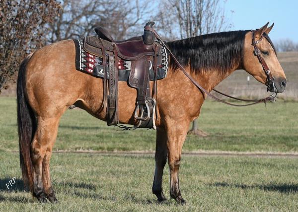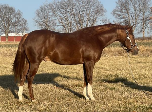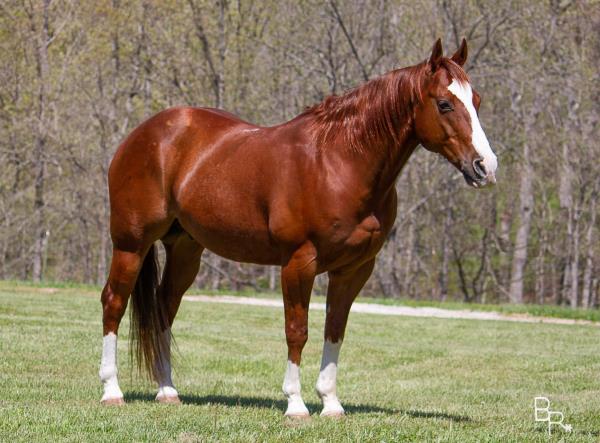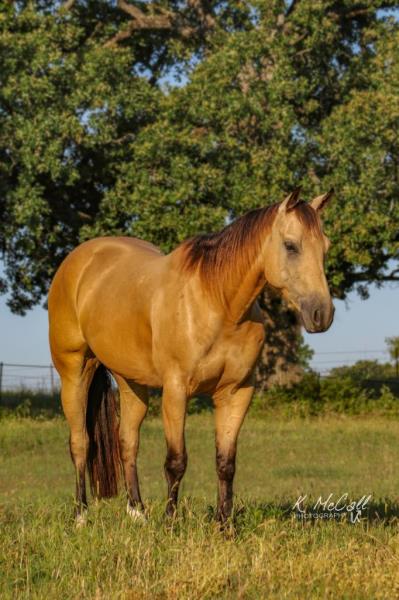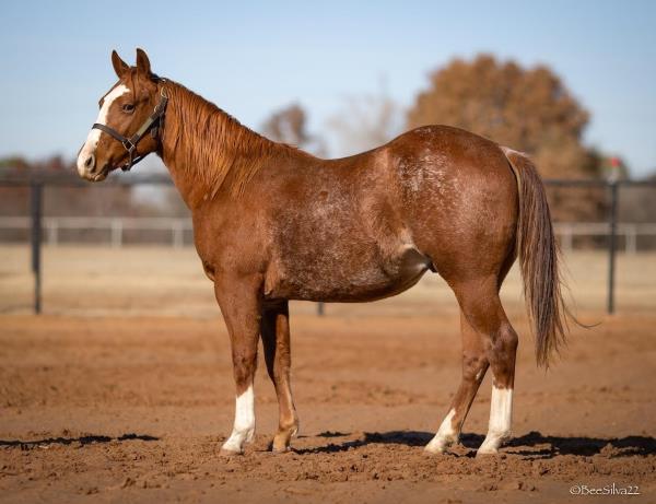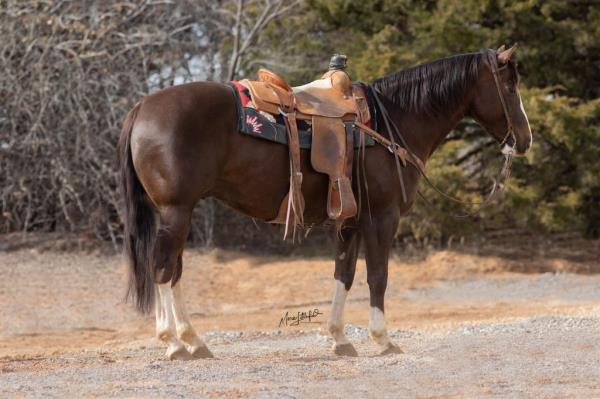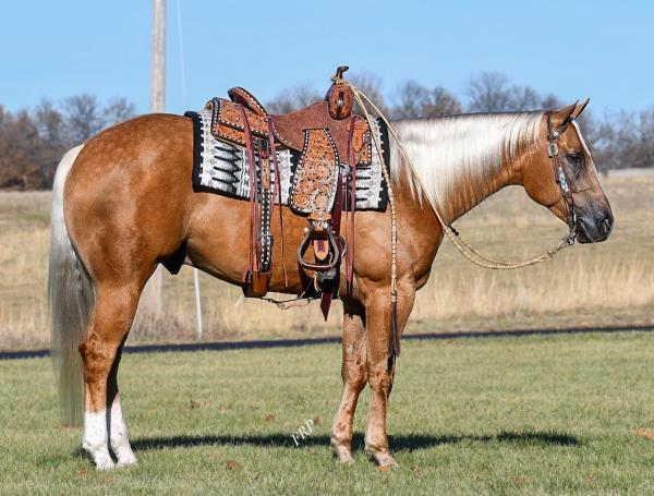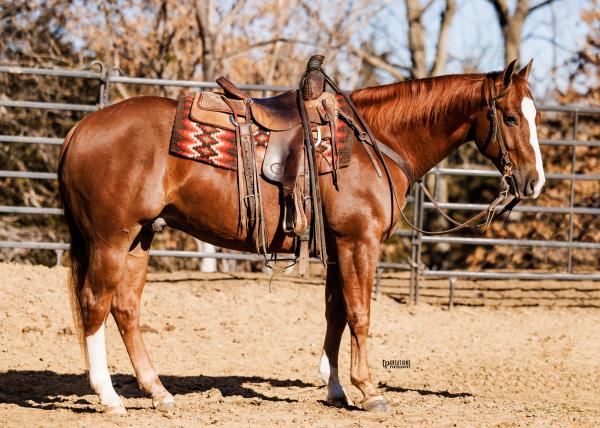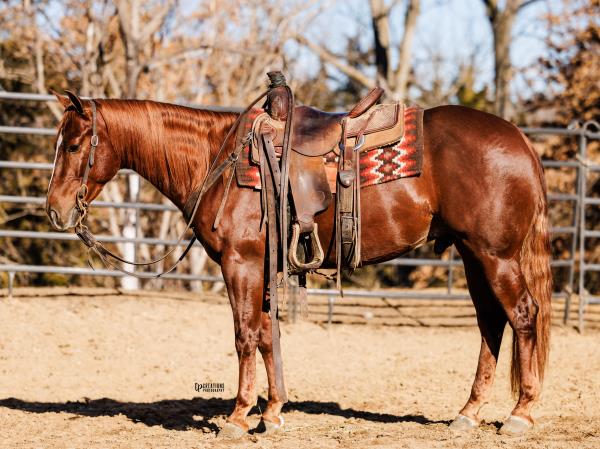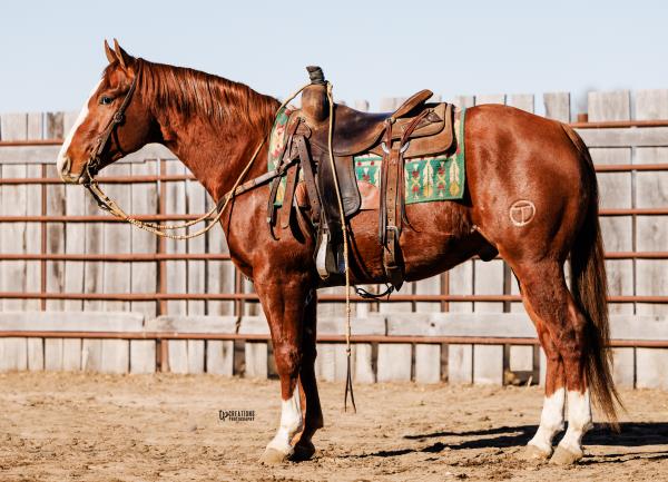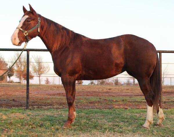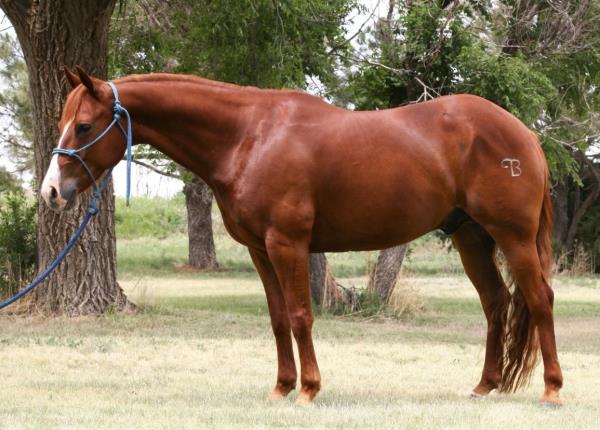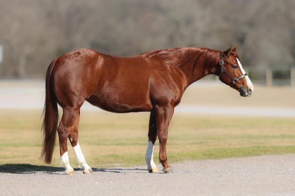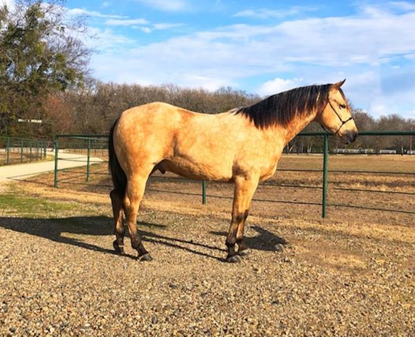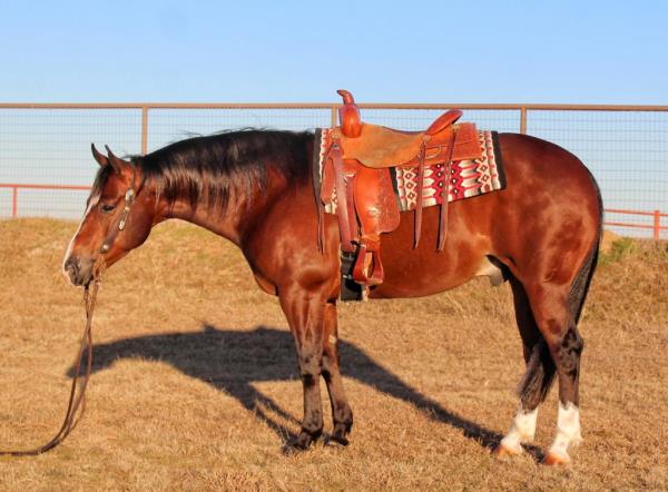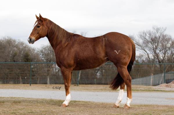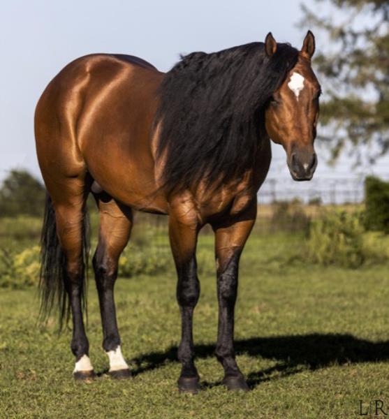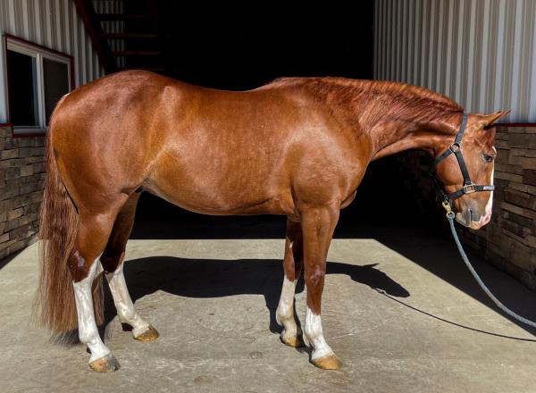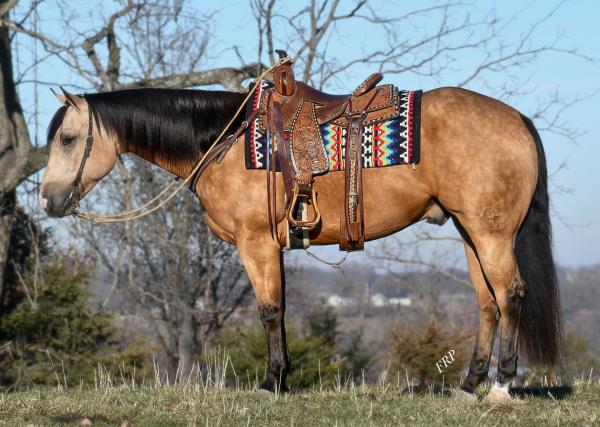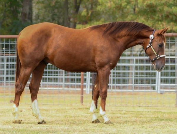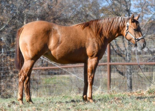 NOTES: Standout stallion that will turn heads. He has placed in the 1D and 2D with limited hauling. Always ready to work, he hauls great with mares and geldings and acts like a gentleman, not studdy. Can be turned out with geldings. Easy to run, point and kick. Recently hauled more and handled all the ground conditions and different setups with ease. Nothing phases him, whether it's livestock or loud music. Would make a standout rodeo horse and easy enough for youth to ride/run. Great conformation, straight legs and is built to last. He adds height, a good mind, length of stride and speed to his foals and is passing on his willing, laid-back personality. This stallion will be derby eligible. Will be shown in the barrel horse preview. Pink and Ruby Buckle, Royal Crown, Future Fortunes, 5 States Breeders Futurity, VGBRA, Colorado Classic, Cowboys State Stallion Incentive, Gridiron and Riata Buckle. 5-Panel N/N.
