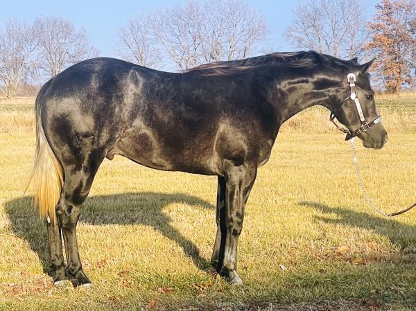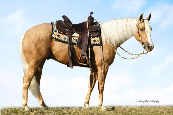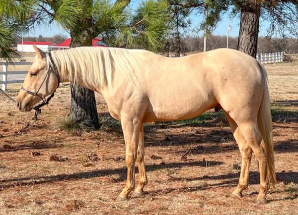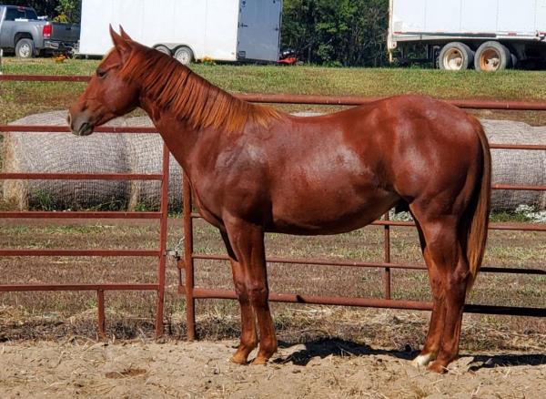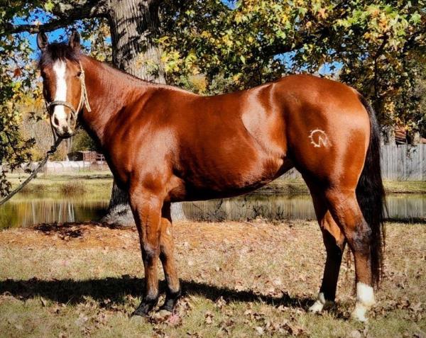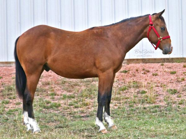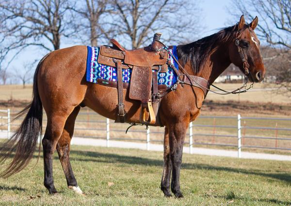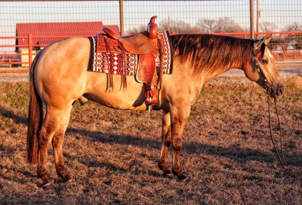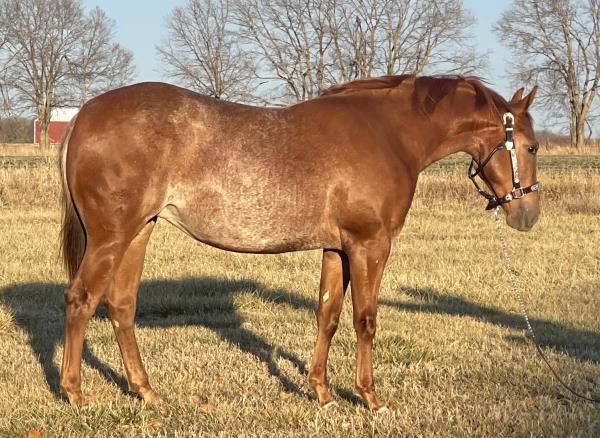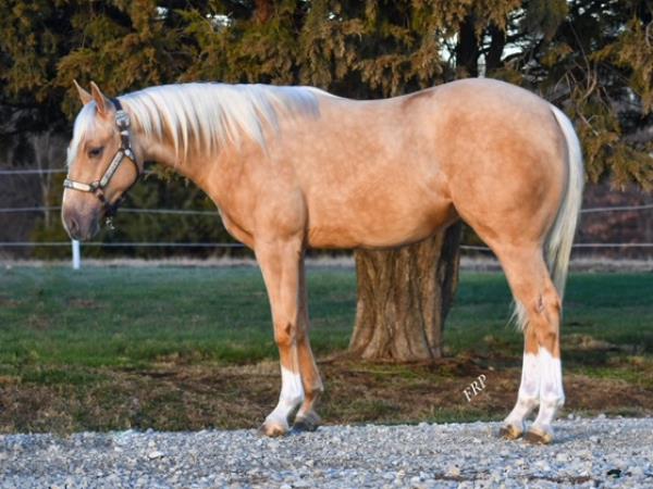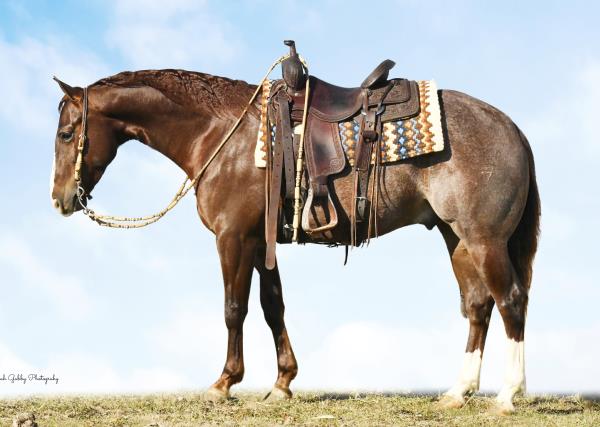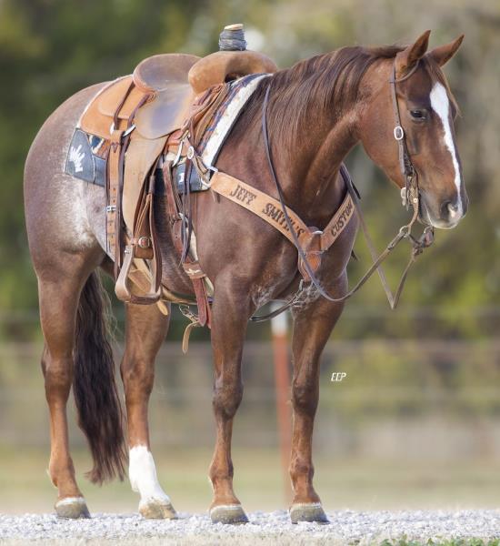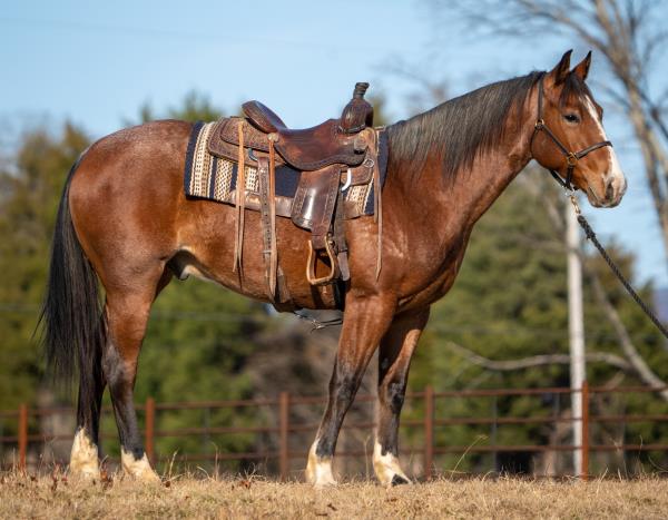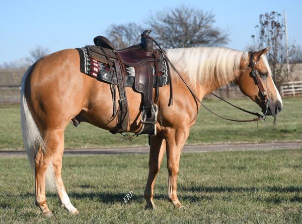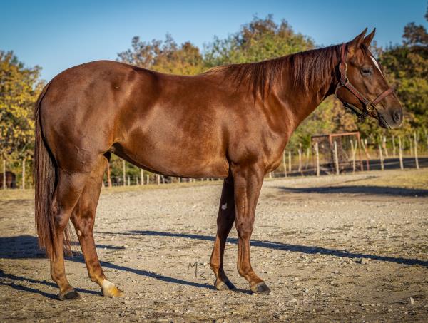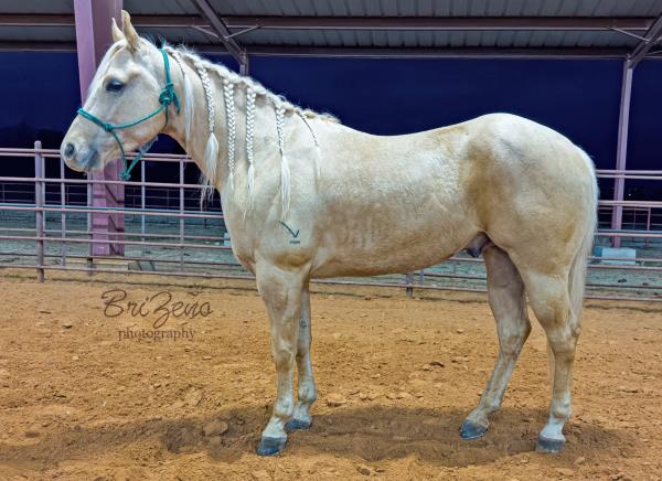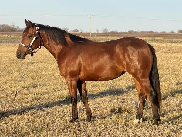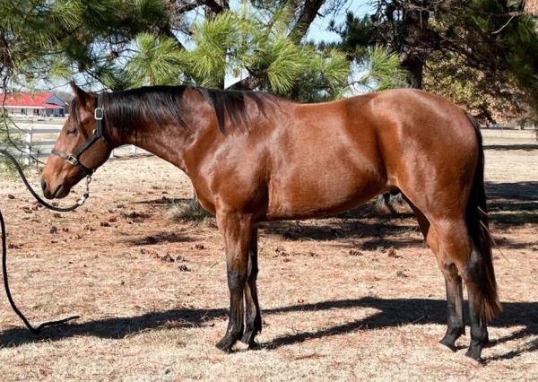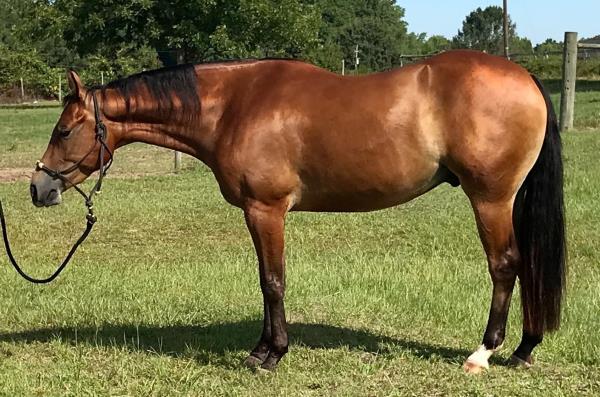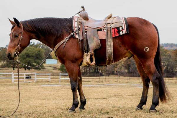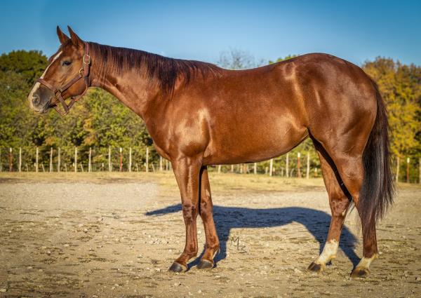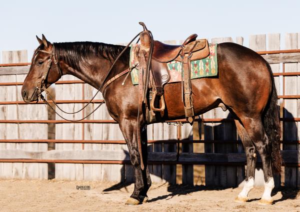 NOTES: Standout stallion that will turn heads. He has placed in the 1D and 2D with limited hauling. Always ready to work, he hauls great with mares and geldings and acts like a gentleman, not studdy. Can be turned out with geldings. Easy to run, point and kick. Recently hauled more and handled all the ground conditions and different setups with ease. Nothing phases him, whether it's livestock or loud music. Would make a standout rodeo horse and easy enough for youth to ride/run. Great conformation, straight legs and is built to last. He adds height, a good mind, length of stride and speed to his foals and is passing on his willing, laid-back personality. This stallion will be derby eligible. Will be shown in the barrel horse preview. Pink and Ruby Buckle, Royal Crown, Future Fortunes, 5 States Breeders Futurity, VGBRA, Colorado Classic, Cowboys State Stallion Incentive, Gridiron and Riata Buckle. 5-Panel N/N.