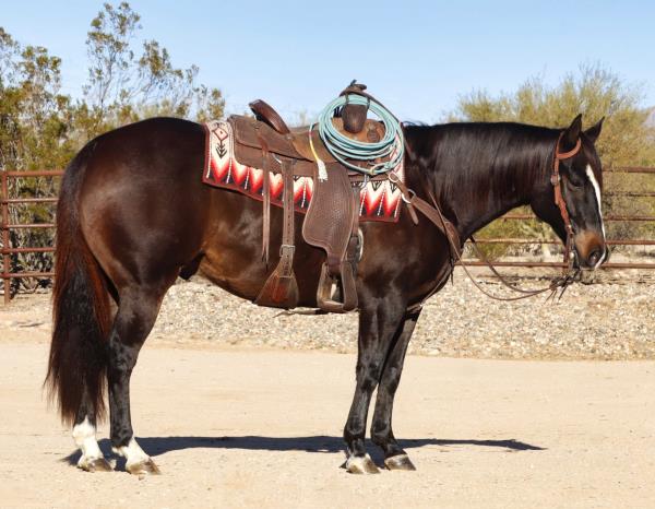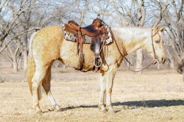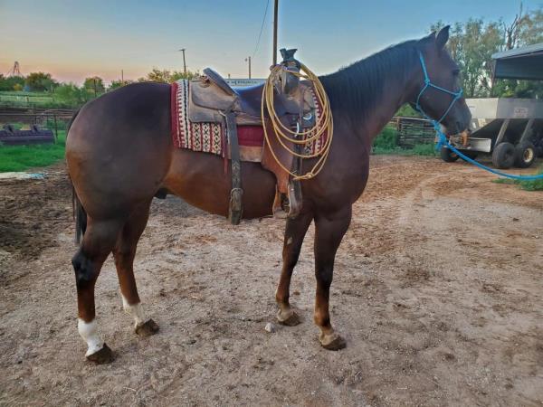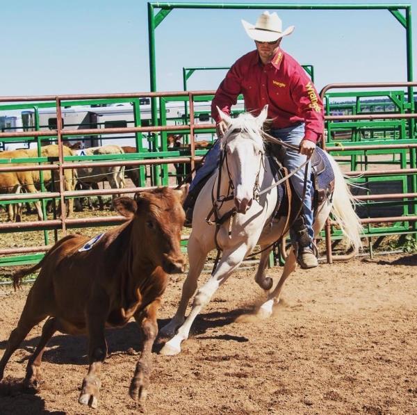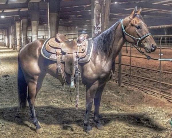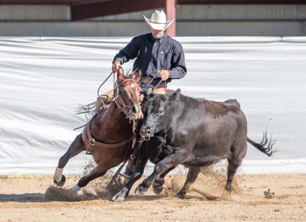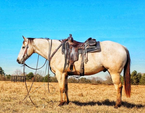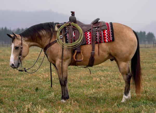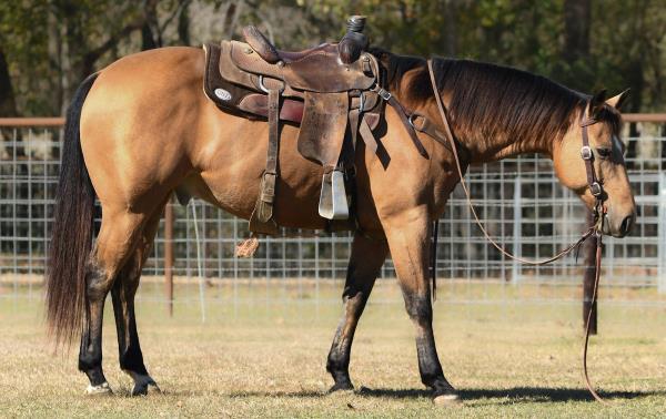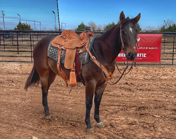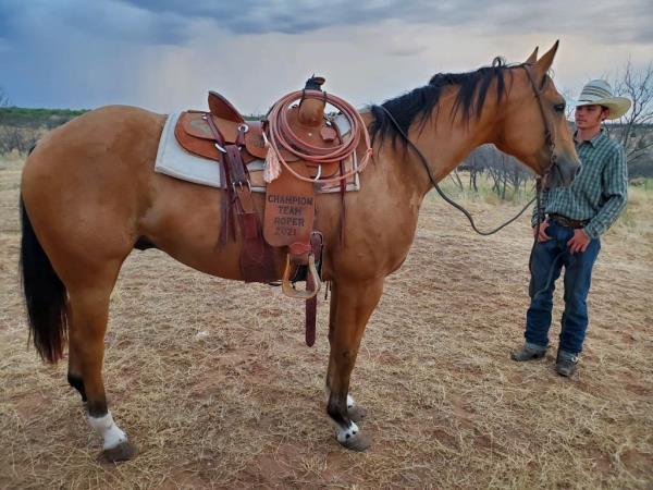 NOTES: This gelding is trained for sorting. He rides inside and outside the arena. He is an excellent breakaway and heel horse. Will be shown in the team roping and calf roping (breakaway) previews.