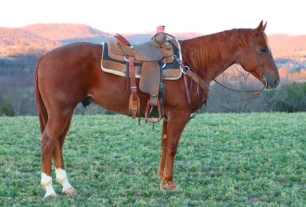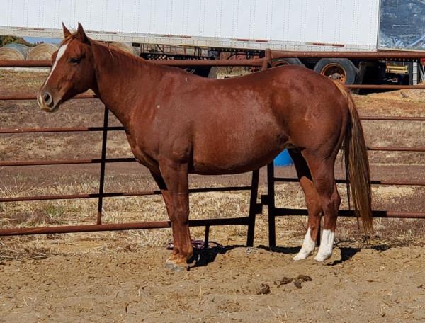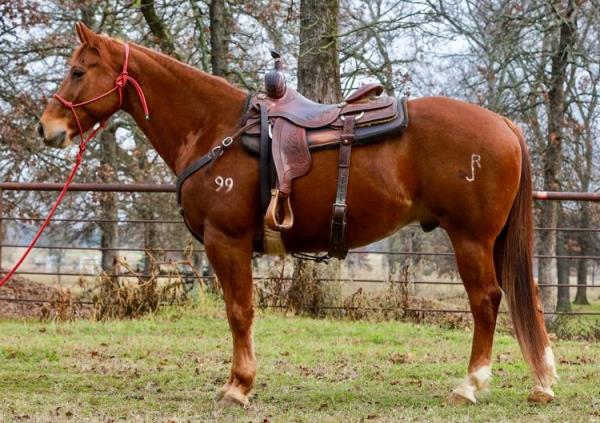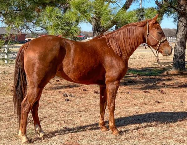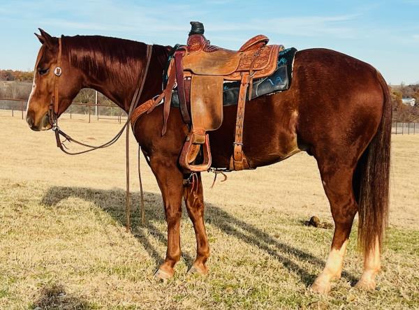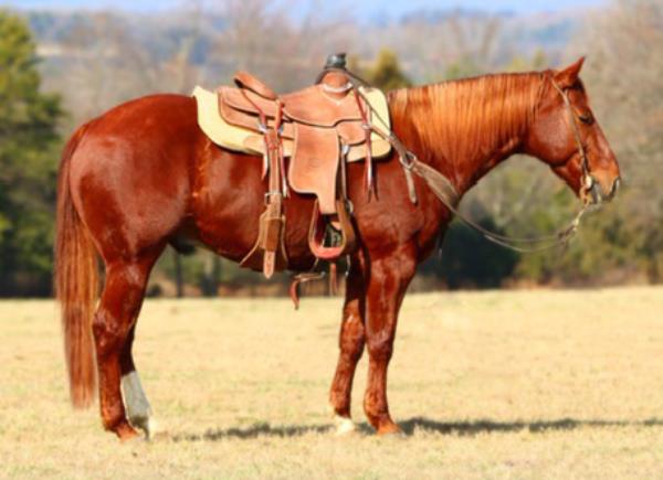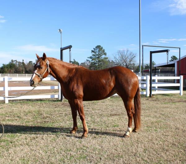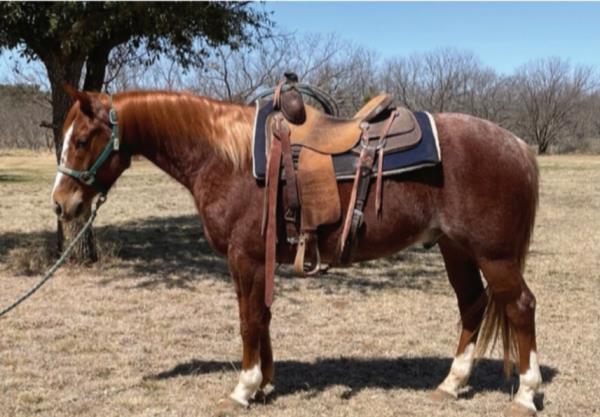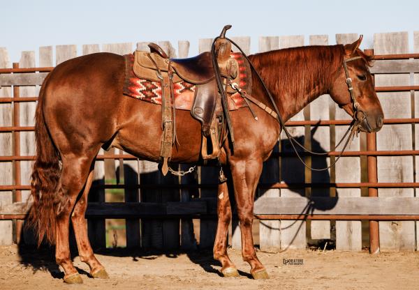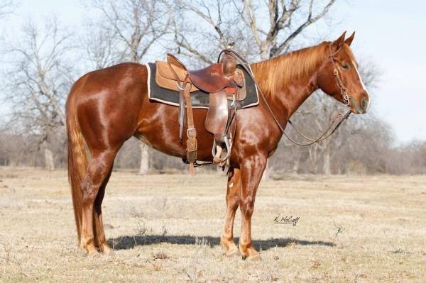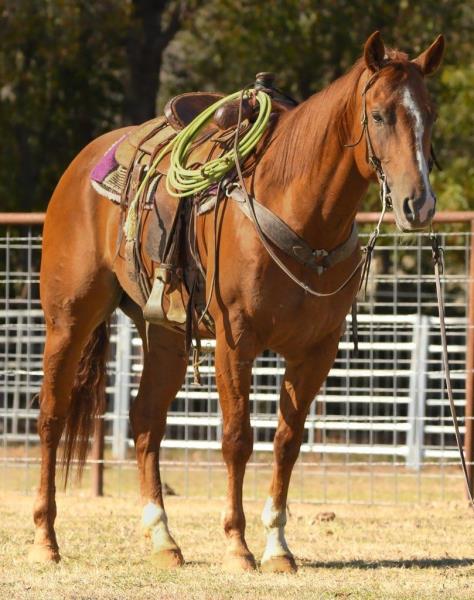 NOTES: "Playboy" is a stout-made, attractive sorrel gelding that stands 15 hands. He is a very nice heel horse and has a big sliding stop. He is fun to head on, scores well, has a lot of rate and faces sharp. He has had money won on both ends. "Playboy" has been used at the stockyards as well as used for dragging calves and sorting pairs. He is gentle and 100% sound. Will be shown in the team roping preview.