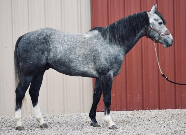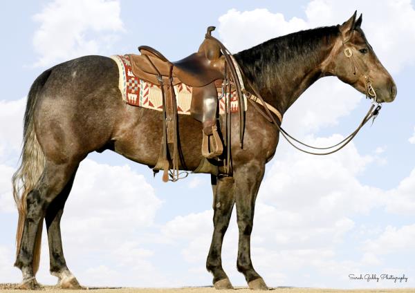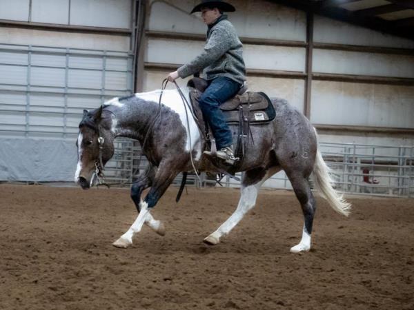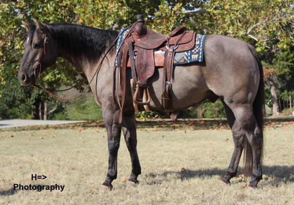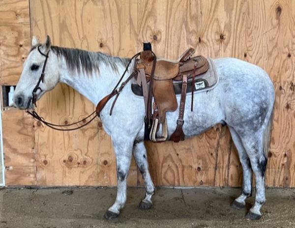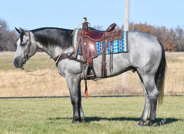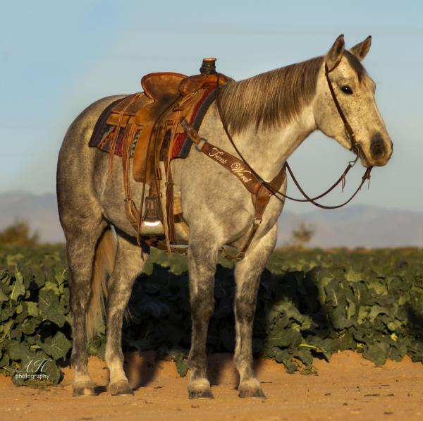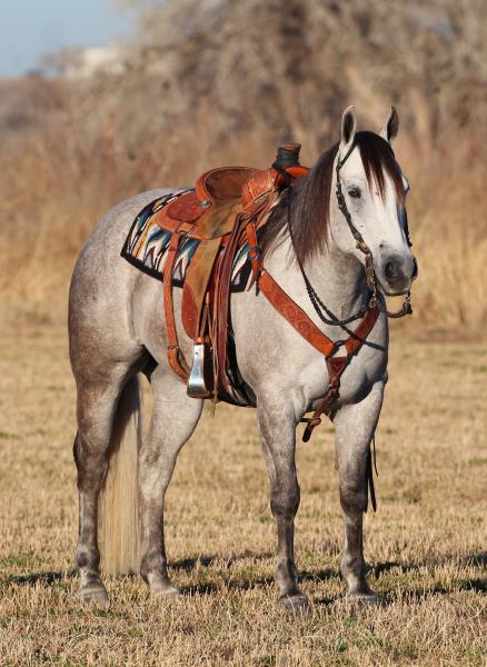 NOTES: "Tucker" is a really special horse. This pretty gray gelding was born on the Haythorn Ranch and is sired by a good son of PLAYGUN. He has a lot of handle and really rides nicely. This is a tremendous-minded horse that could do about anything and get along with about anybody. He is well put together and has a lot of size. In training with Jason Irwin. Will be shown in the reining/riding preview.