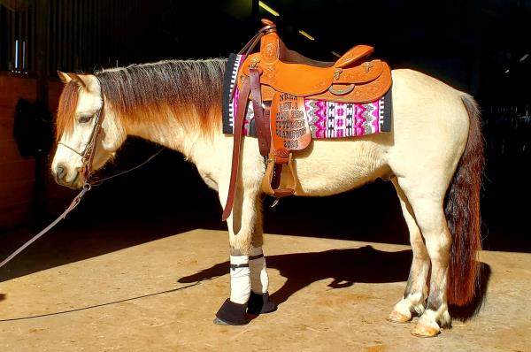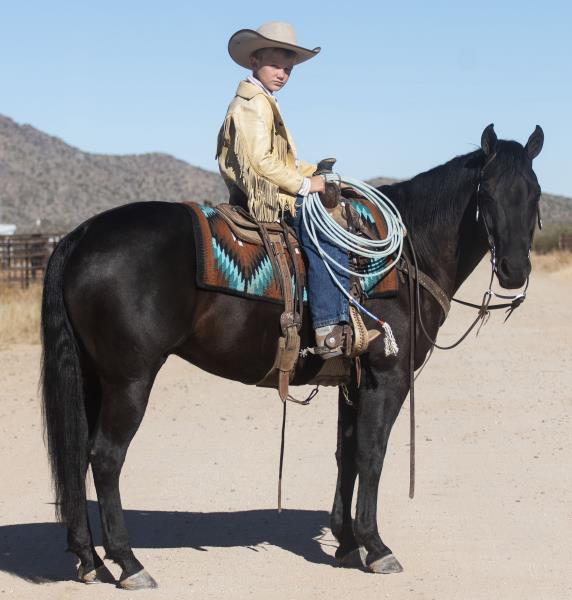 NOTES: This colt is ready to go in whatever direction you need. He is very gentle, neck reins and has fancy moves. He was started in Mexico for calas so he is trained to stop on his rear end. He would make a great heel horse.