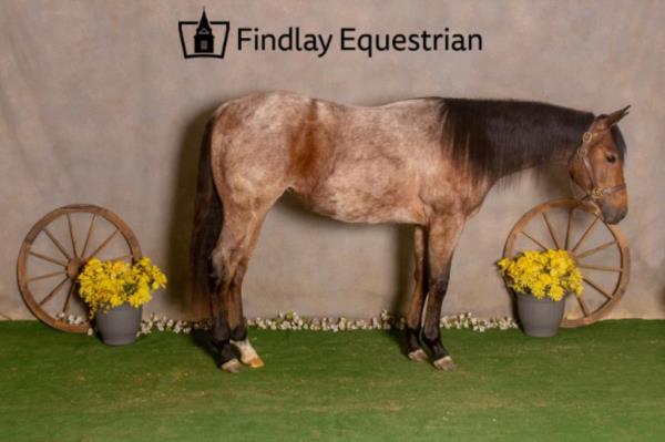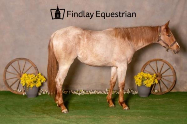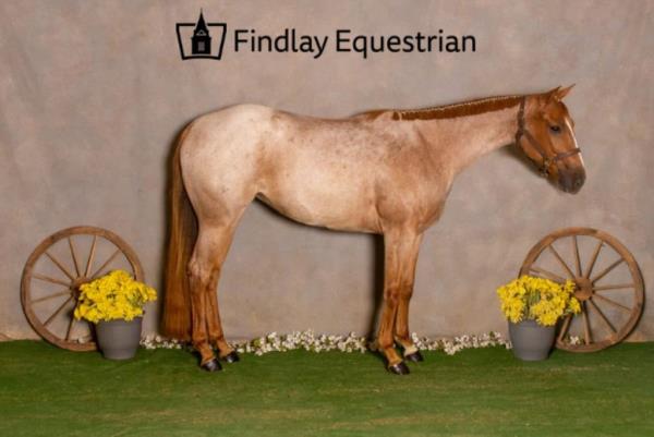 NOTES: Spicy is a 2021, 15 hh red roan mare. She is a versatile horse ready to go any direction from the western all-around to hunter under saddle, to over fences. She is trainable under saddle and easy to work with on the ground. She is a very talented and attractive mare sure to be your next favorite ride.