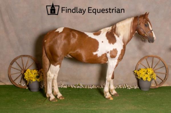 Fish N Chips “Fisher” is a 2019, 15.1 hh Pinto World and Reserve World Champion in halter and color. He is broke and finished in the pleasure, horsemanship, trail, and ranch classes. He has been successfully shown and earned points in the open halter, color, western pleasure and trail as well as amateur walk trot. He can also move out for the HUS and equitation. Fisher would also make a good ranch pleasure, or ranch riding horse. He has been used for youth lessons and novice riders and is a safe and quiet mount. Fisher has no vices, no maintenance needs and is easy and pleasant to handle, ride and show. Would make an excellent amateur or youth all around horse.