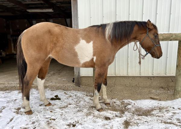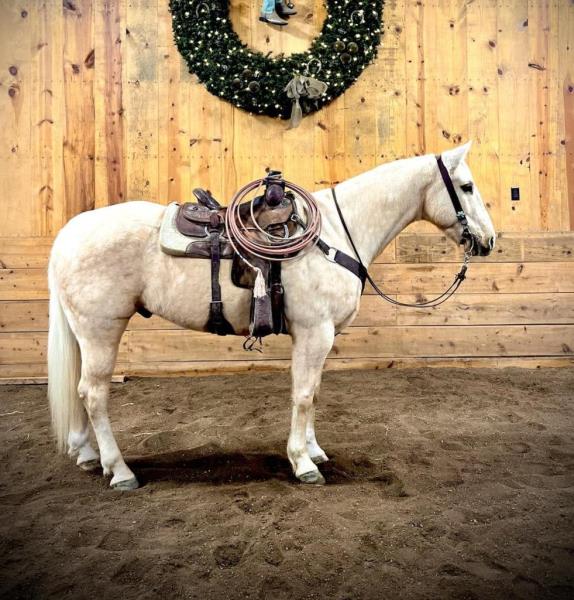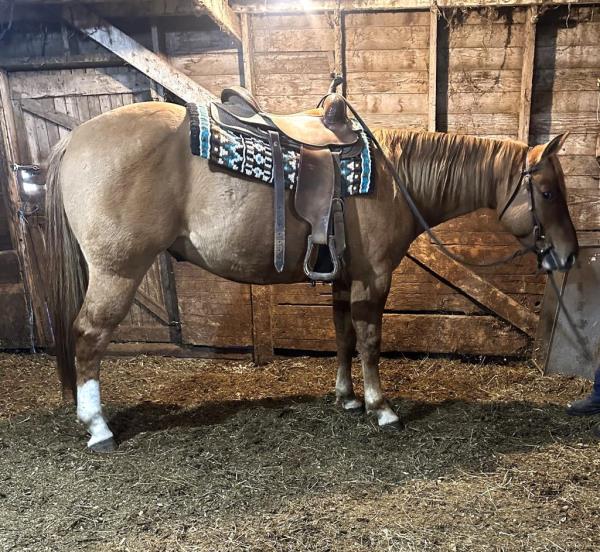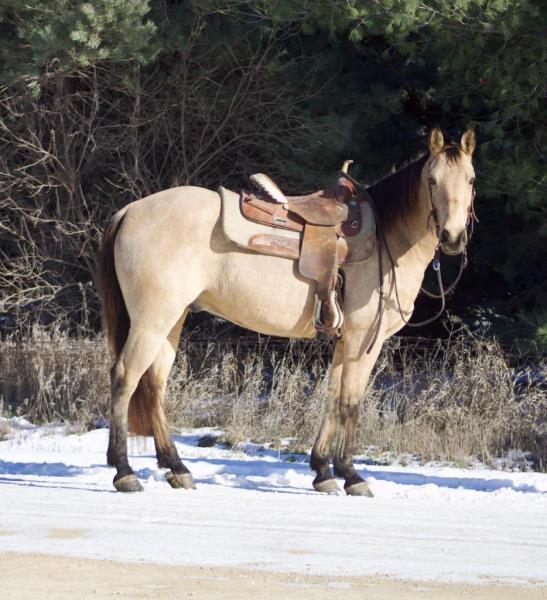 “Taser” is a super pretty, prime aged gelding with a long mane and tail. He has been ridden both in and out of the arena, pushed cattle, and is traffic safe. The previous owner had shown him in a few ranch shows as well. Taser has a good handle, lopes collected circles, and would make a nice performance horse or just a leisure trail mount. Stands 14.3 hands tall and is 100% sound. Sells with current basic pre purchase exam and soundness letter from our veterinarian. For more information call 608-434-4789.