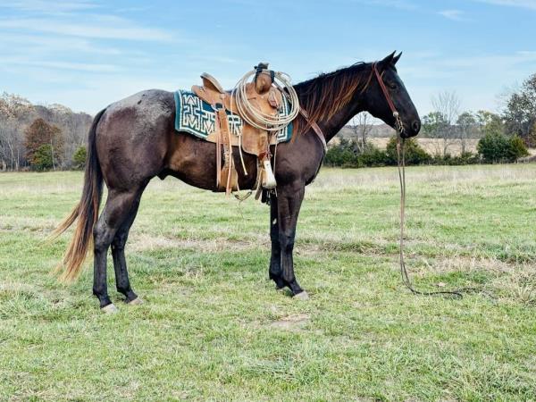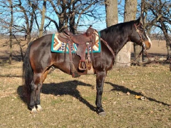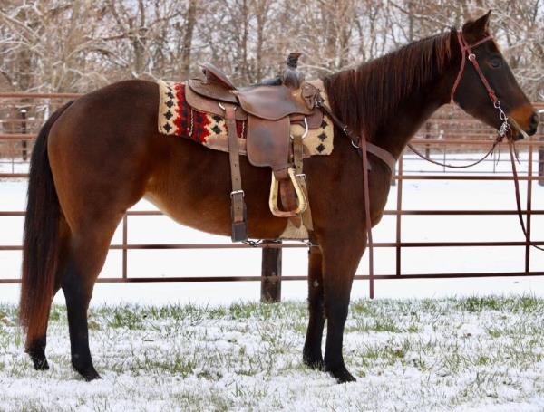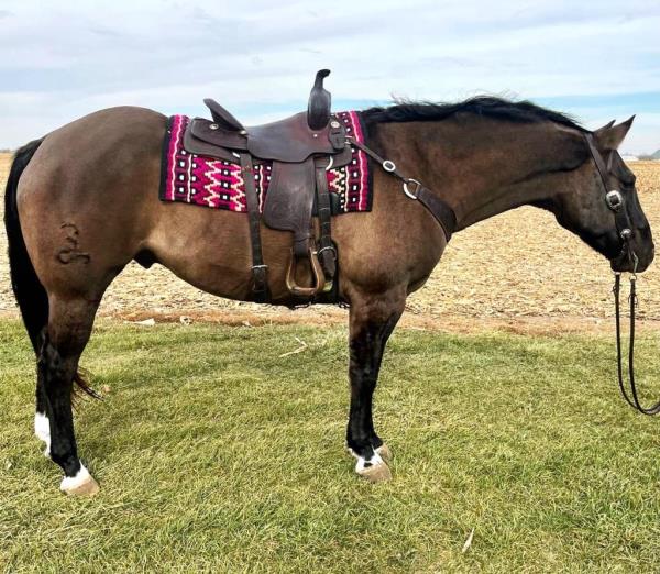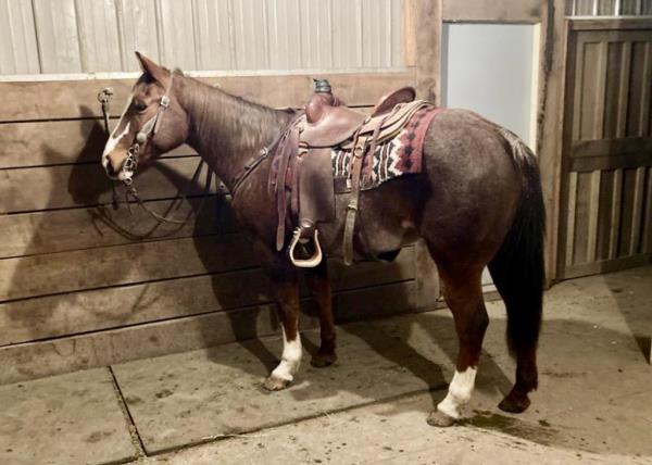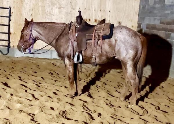 Smoke is a 8 year old Bay Roan quarter horse gelding standing 14.3 hands tall. He has seen more than most horses that are twice his age. You can rope and tie down cattle with him. He has been to the mountains elk hunting. Smoke has a true one hand neck rein, really broke and really rides off leg pressure. Smoke will wtc nice circles and will really ride around. Point him any direction and he will go. Smoke will make a great addition to your barn! Call 319 721-7714 with any questions.