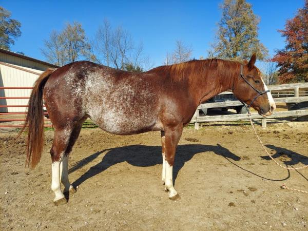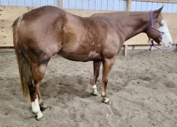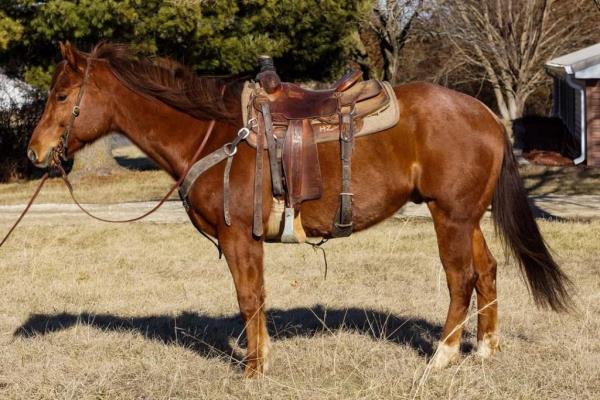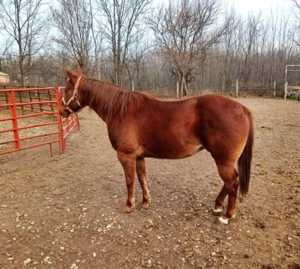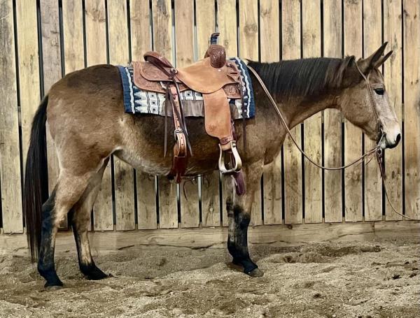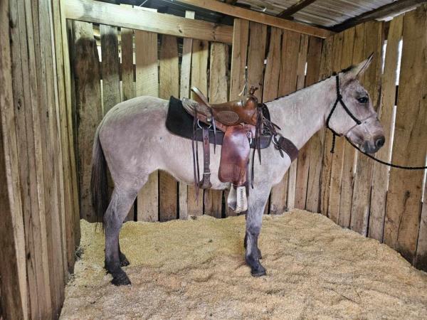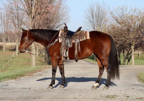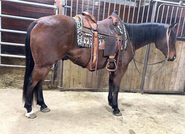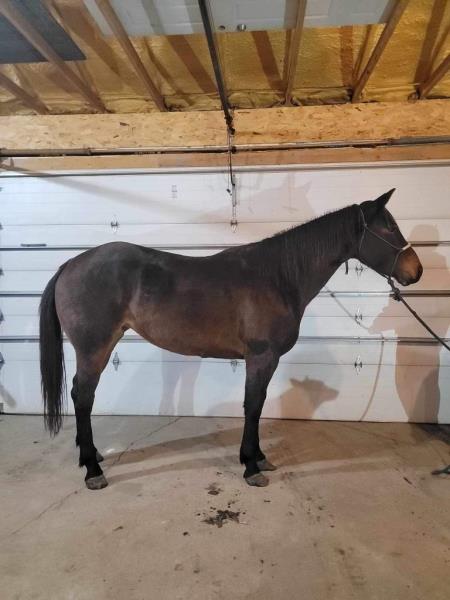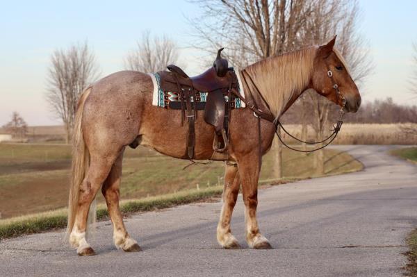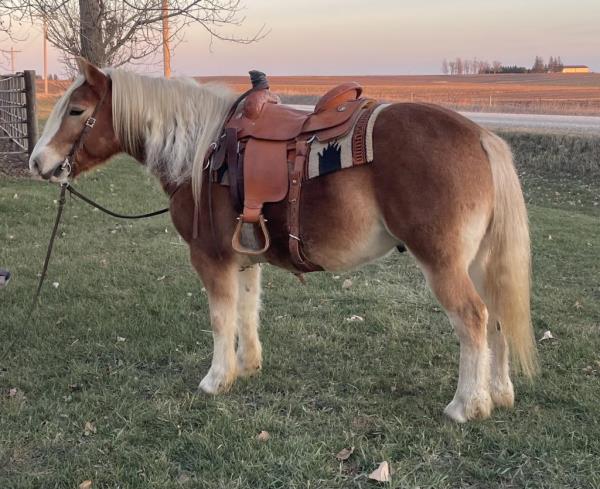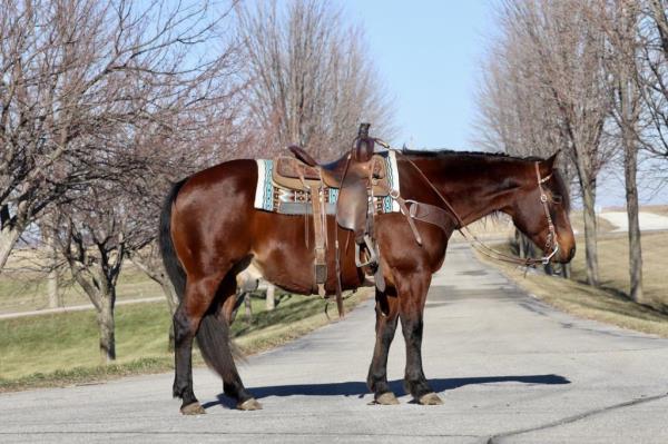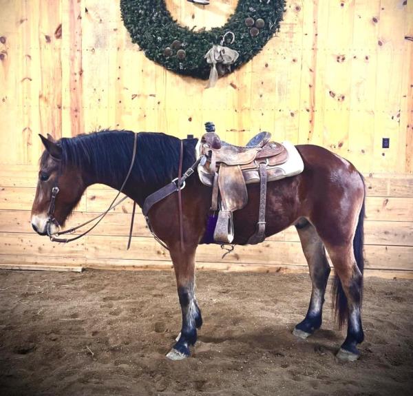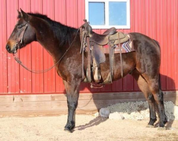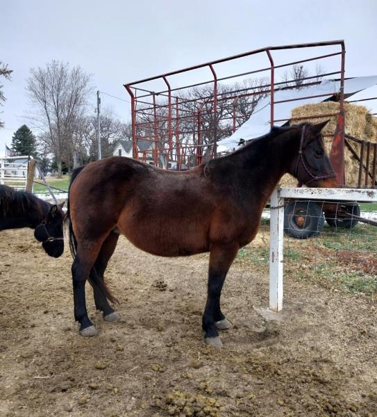 Broke to ride and drive. She has just been raising babies for us the last 5 years. We didn’t breed her back this year and sells open. Gentle and sound just needs a refresher.