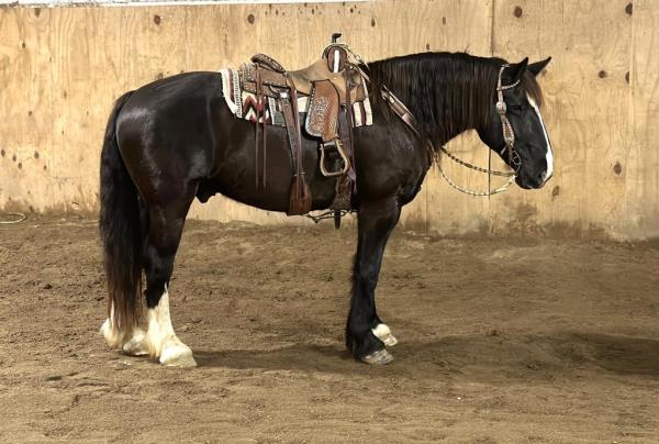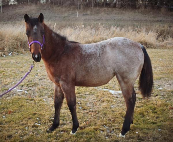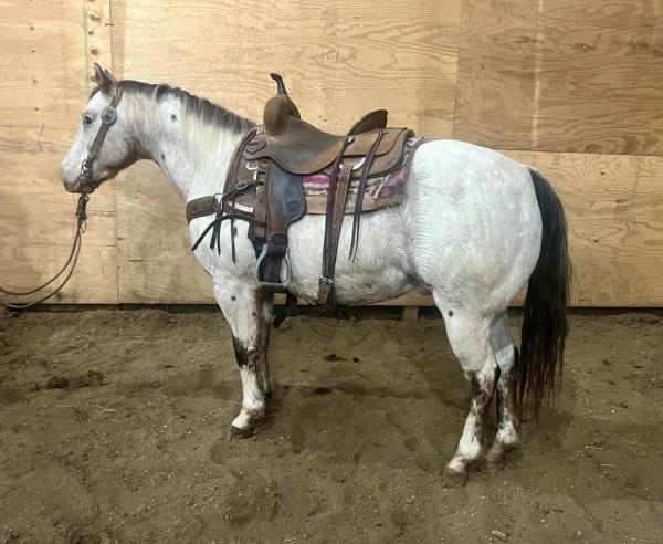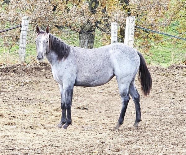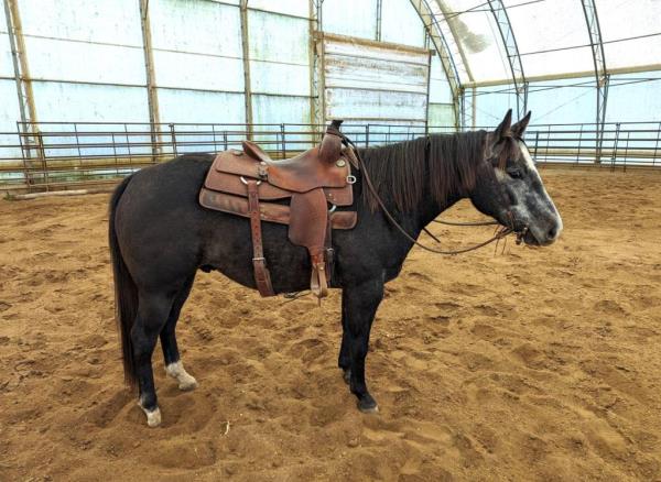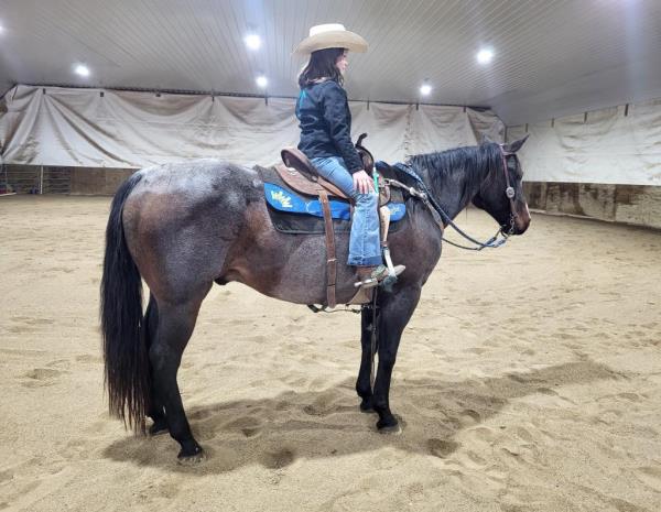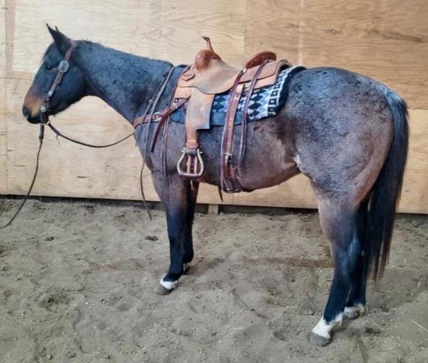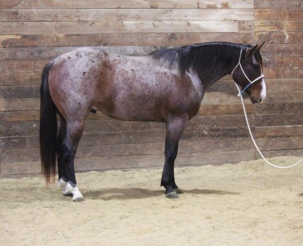 Coming 3yr old blue roan draft cross gelding standing 15.2hh. You can shoot a gun off him, crack a bullwhip, drag a log, good with the tarp, etc. Good for farrier, saddling, bathing, overall nice to be around. Been ridden in the arena, in the pasture, around the property and lightly trail ridden. Solid foundation has been laid to go in the direction of your choosing!