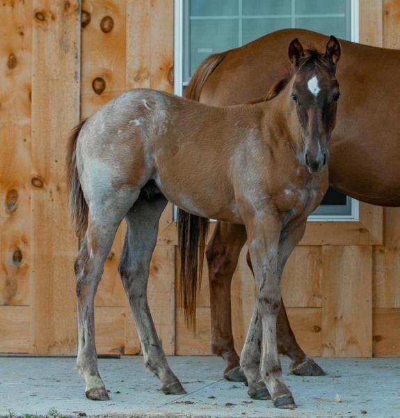 "CALLIE", from the minute she was born, this solid built Bay Roan Filly can absolutely turn on a dime. She is very kind and, is willing to learn. She should mature to 15 hands.