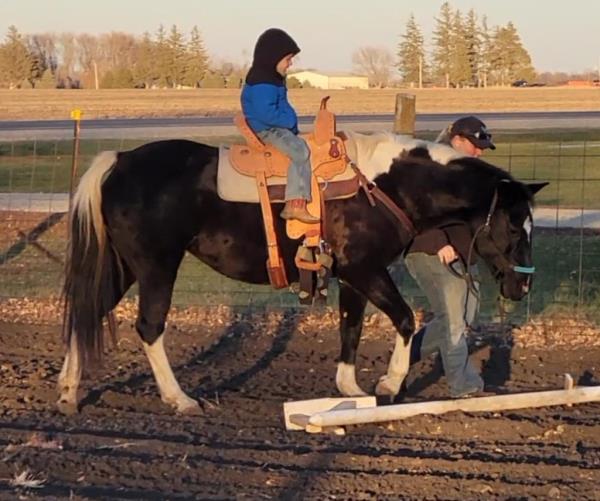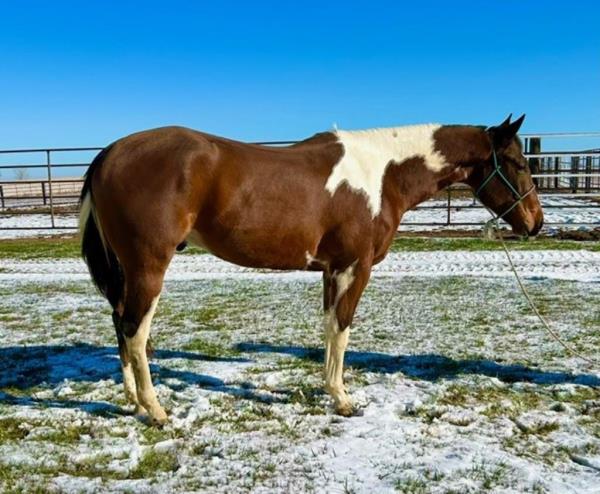 Kip is a 2 year old registered paint gelding that has not been starting due to no fault of his own. He loads good, picks up his feet, and is gentle to be around. He stands right at 14.3 hh. He is a nice prospect with good foot and bone, he has a little scar on his right front but does not affect him in any way, he is 100% sound.