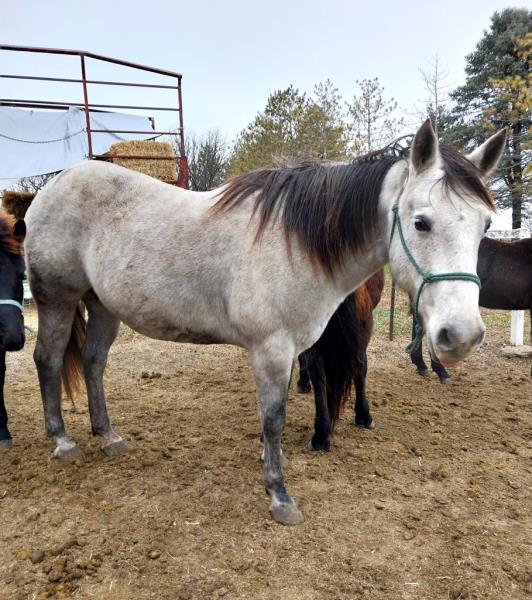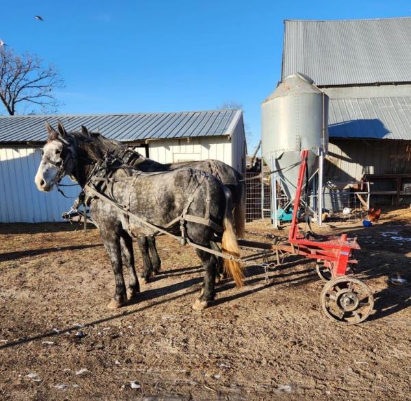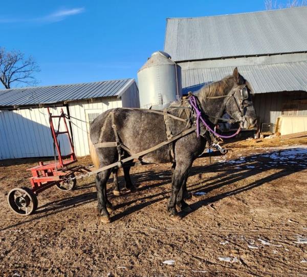Coming 4-year-old grade gray percheron mare. Good broke, good with traffic, easy to catch and sound. Stand 16 hands.
