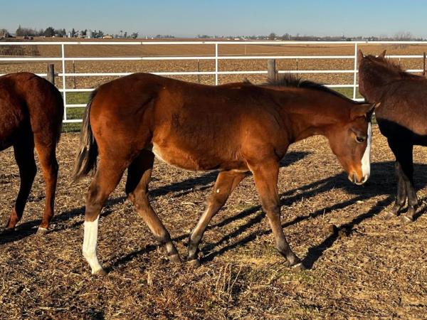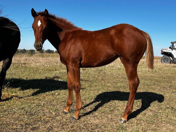NOTES: 2023 filly by Frenchmans Buzios out of a grandaughter of the great Shinning spark. She is elgible for triple crown, BRIF, Go For Broke Full House incentive, Select Stallion Stakes, Future Fortunes and Corn Huskers Futurity. This filly has the crome and pedigree to take you to the winners circle.