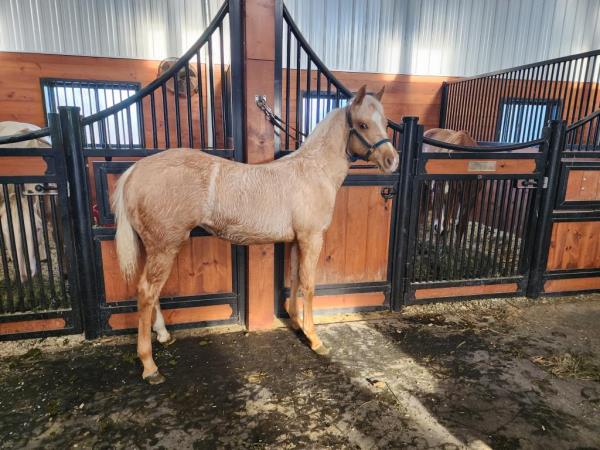 Fancy Palomino Colt that will really show himself off. Sire is a son of Whizkey N Diamonds out of a daughter of Nu Chex to Cash and bottom side is a Zippin Bonanza, Docs Prescription mare that has done it all locally and built right. This colt will sure get you noticed! He is weaned and off pasture, fully vaccinated, current coggins, just had his feet trimmed, completely halterbroke, trailers, ties, bathes well; all the hard work is done, just grow him for a year and have a good one.