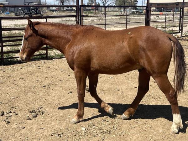 Bud is a good little horse that has been used a lot outside checking wheat pasture cattle, as well as used in the pens for the last two years. Here is a young gelding with lots of cow, all of the ability and a willing mind - ready to go in any direction you choose. He will stand 14.3 hds with plenty of shape and be 100% sound.