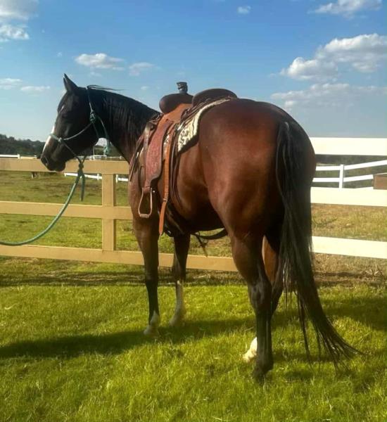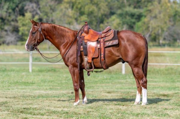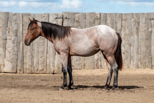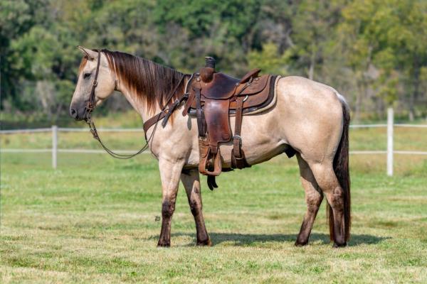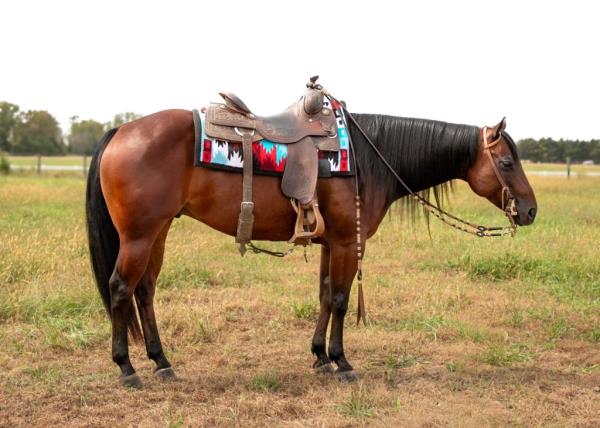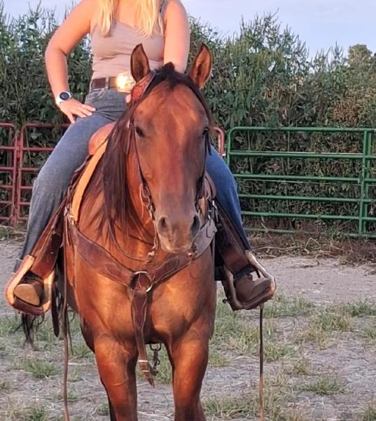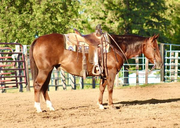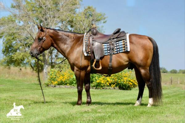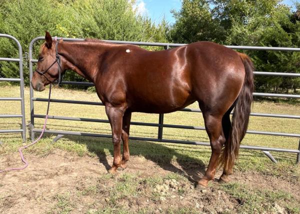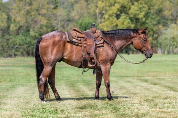 She was trained in the cutting pen in her 2 and 3yr old year, since she has been a broodmare and has produced offspring that has went on an made outstanding performance horses in the arena and on the ranch. She is open and sound to breed. With a little tuning she could go back to riding if so choosed. Sound, no vices or bad habits.