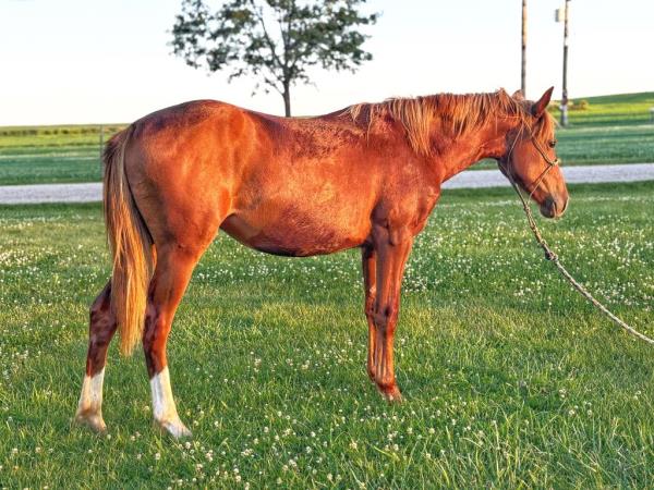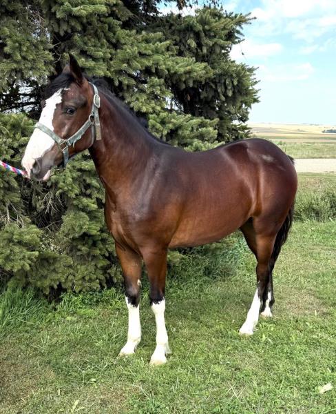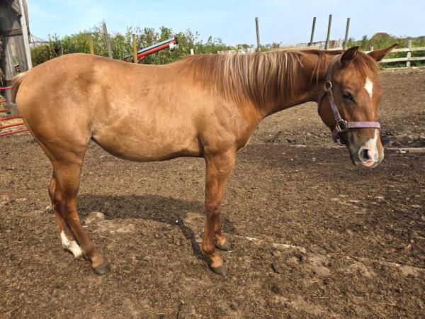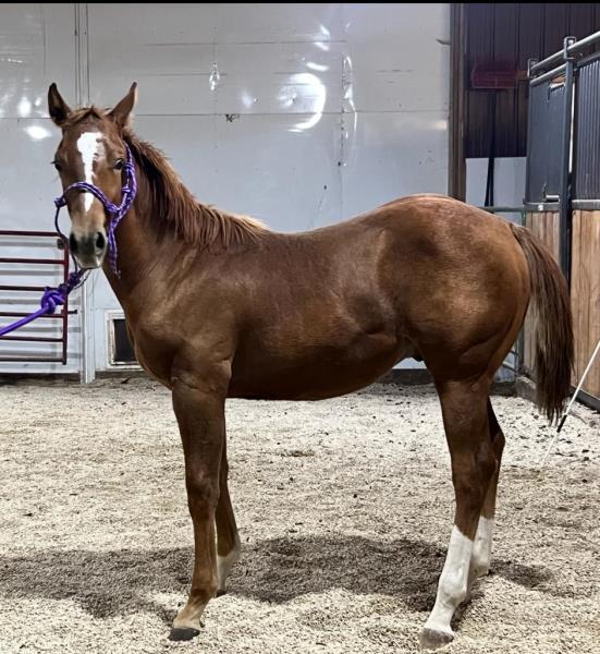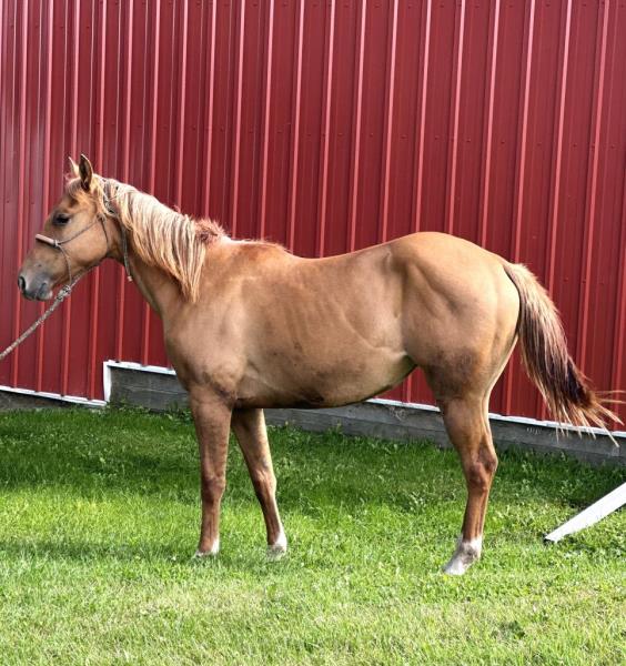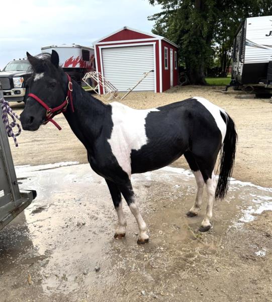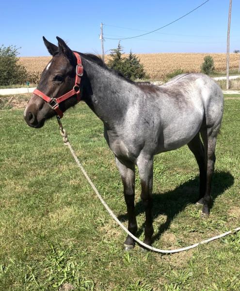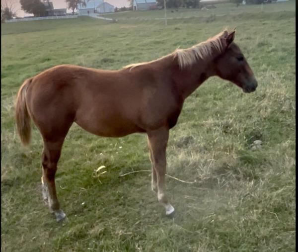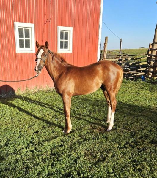 Coming 2yr old. Ready to start. Catches, loads, ties, in your pocket. No spook. Easy keeper. 12.2-13hh. Dam is Gambler Red Star. Contact info: 515-745-4238