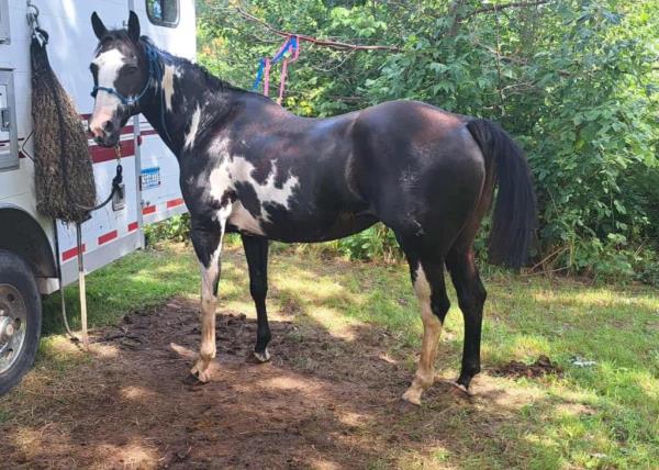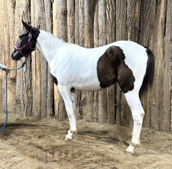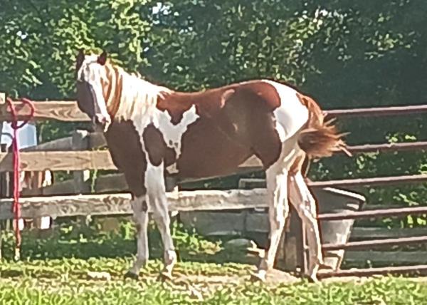 Nate is a striking tri-colored Paint Gypsy cross stud colt with all the right looks and a gentle, people-loving personality. He is safe, sound, and halter broke, making him easy to handle for his age. Nate is expected to mature over 16 hands, giving him the size and presence to turn into a top-notch saddle horse. With his color, conformation, and disposition, Nate is a young prospect you won’t want to miss. 319 721-7714 with any questions!