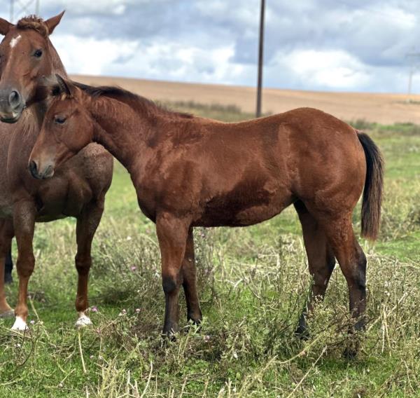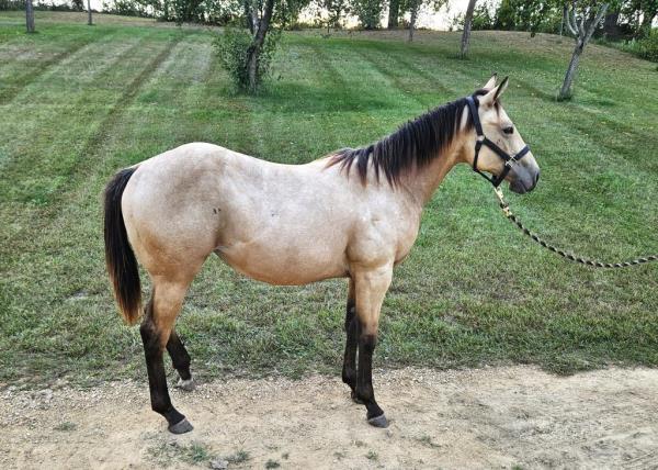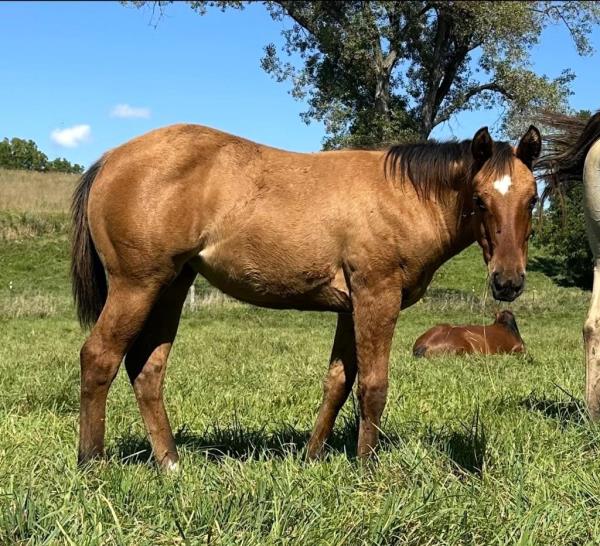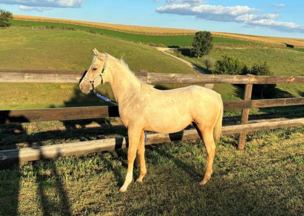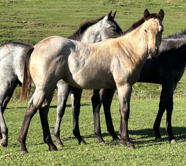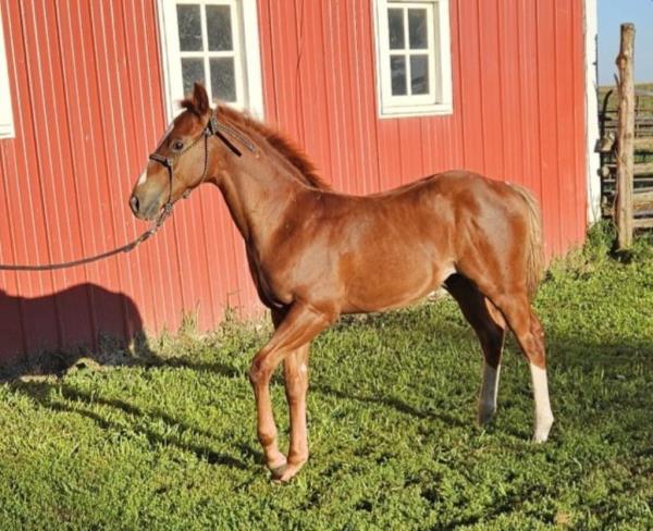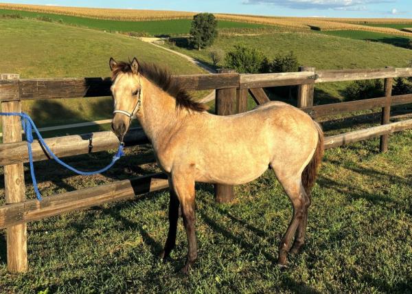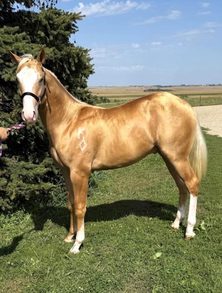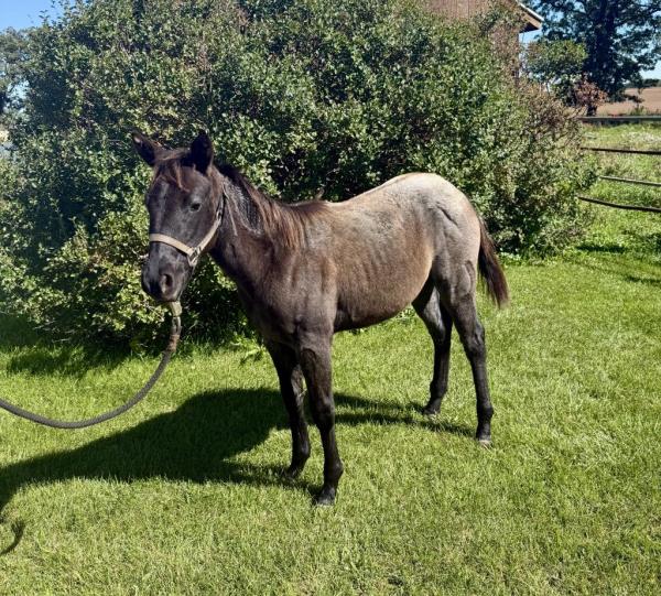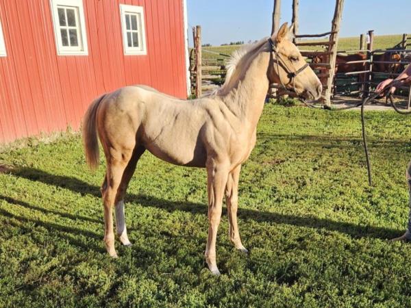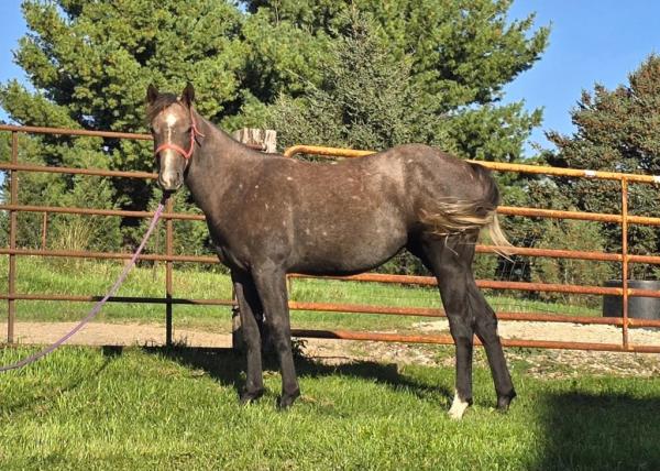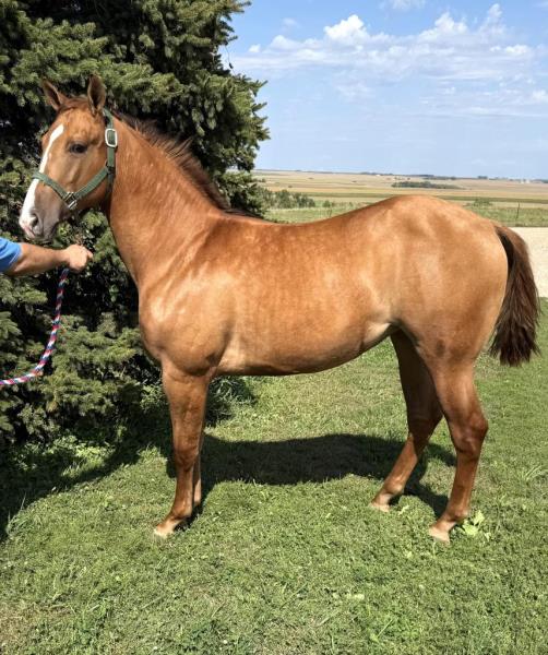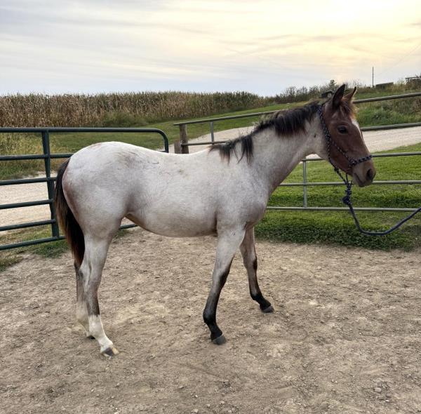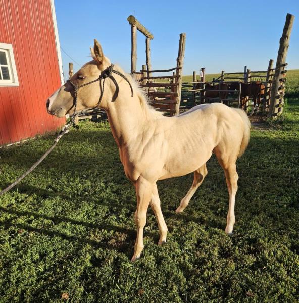 Apache is a yearling filly. She is very fun to work with and very easy to work with she picks up on things fast. She very smart. She stands for the farrier and has been ponied on trails. She should mature to be about 15.2 hands. Eligible for the Ranch Horse Extravaganza and Futurity. FMI (319) 464-6244