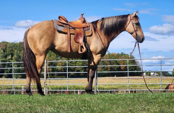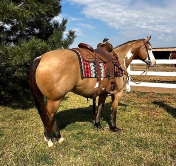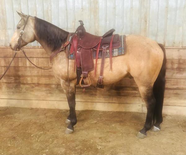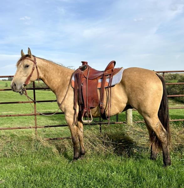 Matt will be a fancy to look at, handy sized 7 year old buckskin gelding that we think has a very bright future in the arena or out on the trails. He will stand a short 14 hands tall with all the looks and ability in the world. Matt has been used in the pens and outside by a young man this past summer and will be ready to go in any direction you wish to take him. He will be 100% sound in every way, being gentle to be around and gets along well with others. 580-334-1391