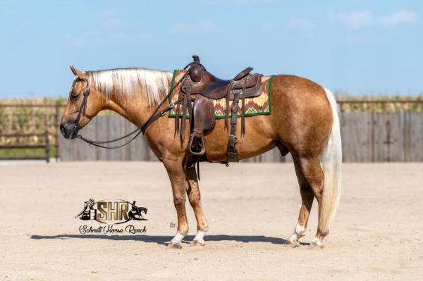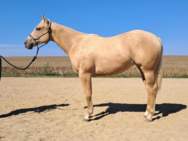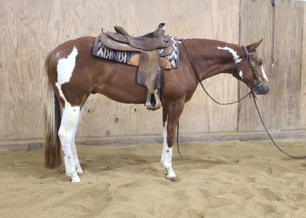 This mare is well balanced with pretty head, short back, nice hip and long legged. Her pedigree goes back to Zippos Sensation, Mr Fancy Bonanza and Huslers Ole Man. Her Dam: Fancy Lady Husler has produced World and Reserve World Champions in both APHA and PtHA (Pinto) . Disciplines include: Western Pleasure, Color, Performance Halter, Showmanship, Trail, English and Ranch. FMI (319) 350-8816