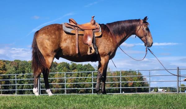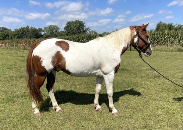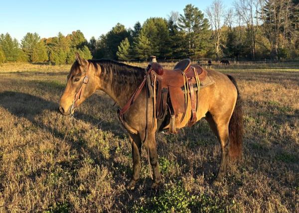 Big gentle dude friendly gelding. Been trail ridden all over the Midwest. One hand neck reins and goes where he's pointed. About any level of rider should be able to get along with him. Roughly 15.1hh. FMI 608-434-4789