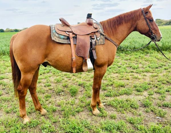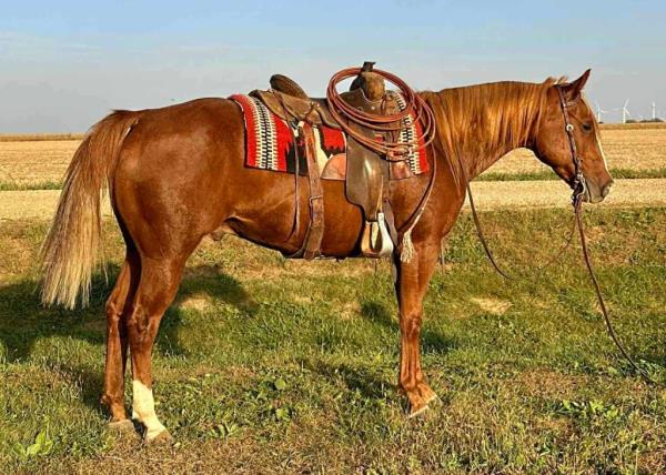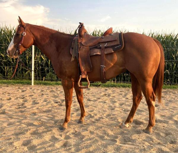 Keen made sorrel gelding. Has a good start and is ready to go home and go to work or put miles on down the trails. Gentle to handle. Roughly 14.2hh. FMI 608-434-4789