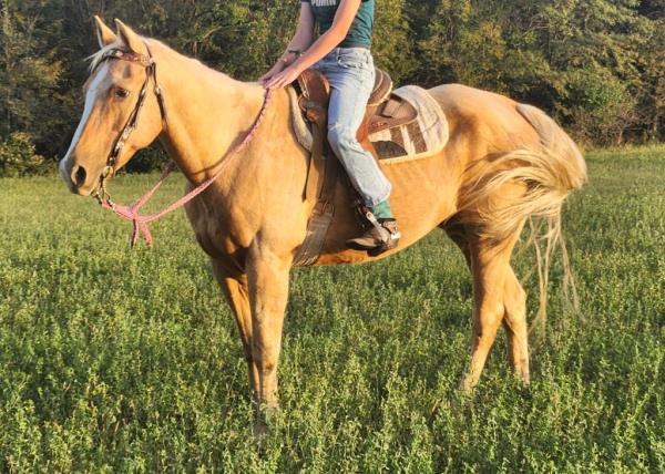 The mare has been a 14 yr old girls horse for the past 2 years. Has used her in play days and trails. FMI (417) 770-8584