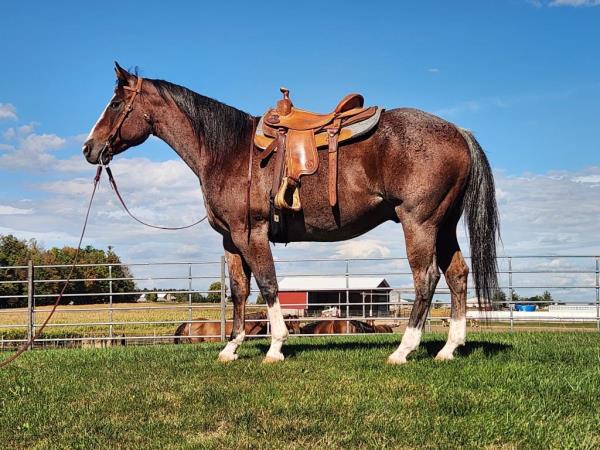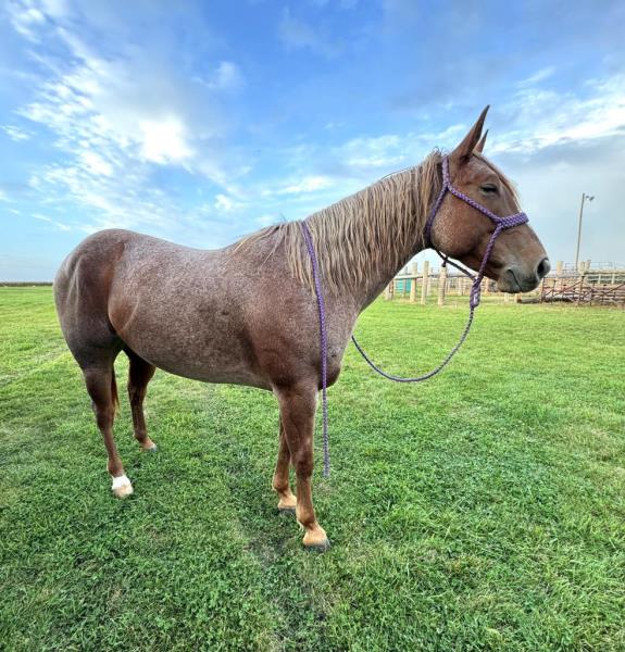 Nice, red roan gelding that we haven’t started yet. 100% sound. FMI call David Paknett 608–732–2476.
