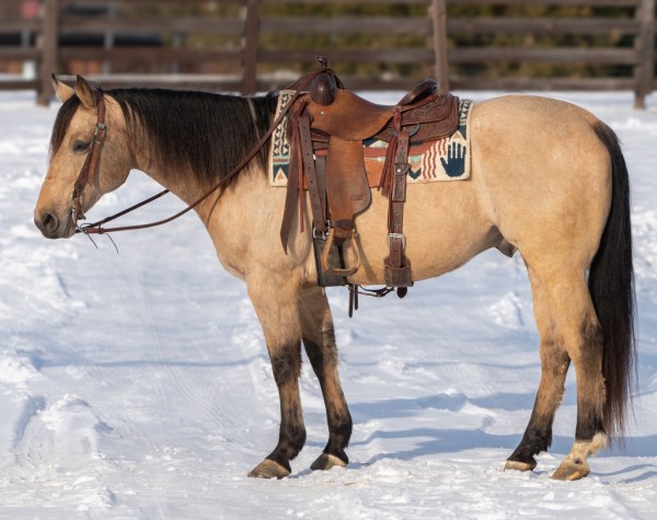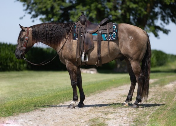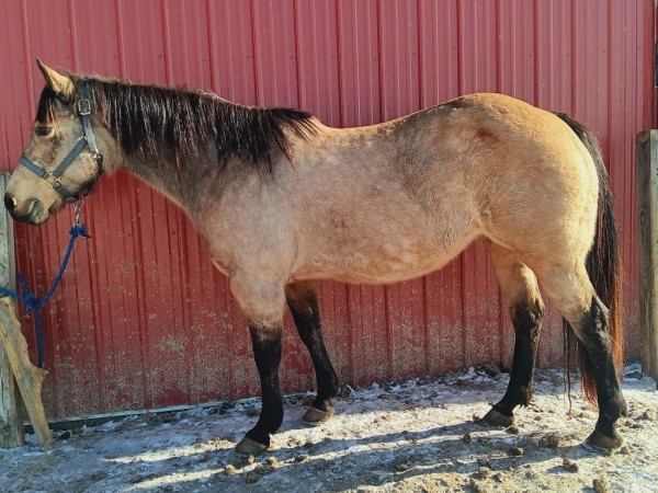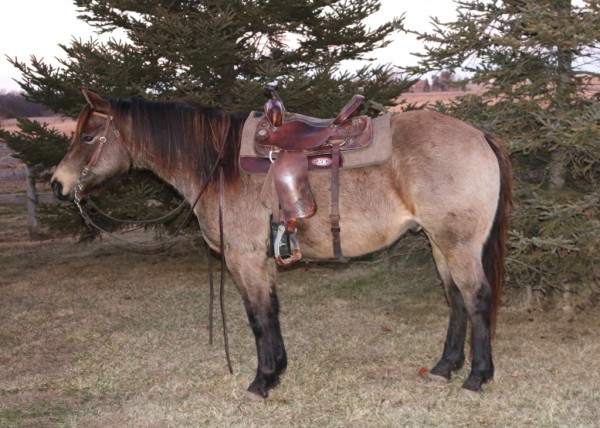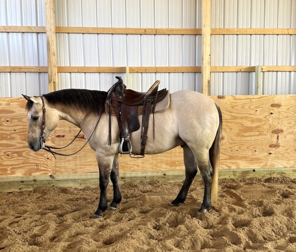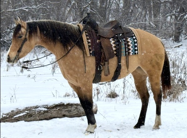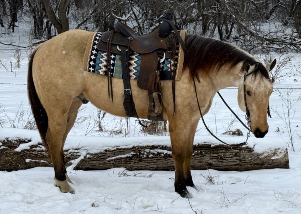 NOTES: Chex is a cowboy colored dun gelding that stands just shy of 15.1 hands and weighs 1140#. We have ridden him quite extensively in the arena as well as out on the trail. Last summer we hauled him to Forestville State Park riding, where he did wonderful on the trails, crossing water, bridges and going over downfall. Chex will go where you point him and takes new things in stride. We acquired Chex from the family whom bred and raised him a year ago, and have enjoyed putting miles on him preparing him for you. He has a solid foundation with the athletic ability to be your next performance/ranch or trail horse. Current on Coggins, Dental, Deworming, & Farrier. FMI & Photos please visit hansonhorseranch.com or call Jordan @ (507) 272 3571