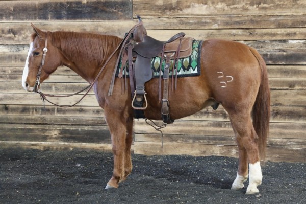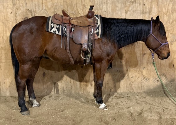 HP branded and by Pitzer Ranch leading sire Mia Browbeater. 15'2 hands, medium built. Nicely broke and lightly started tracking steers out of the heading box. 100% sound
