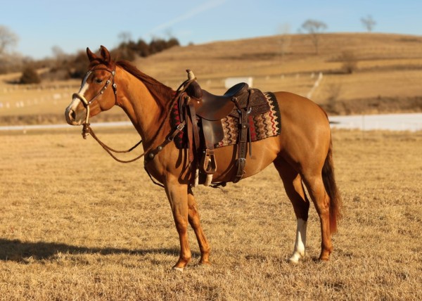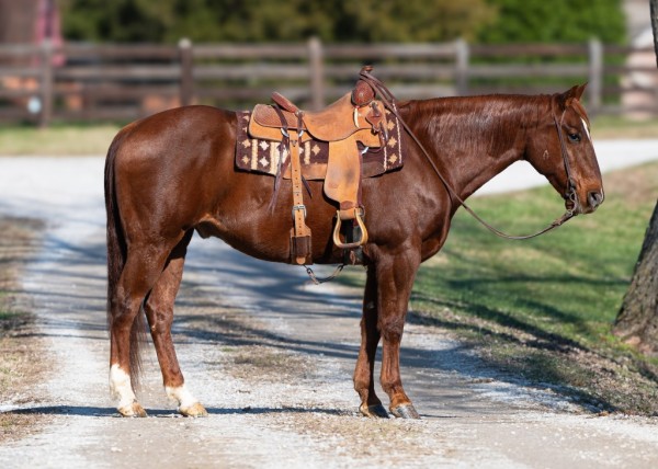 He’s a striking cherry red sorrel with roan hairs scattered throughout his body, and he turns heads everywhere he goes. If you’re looking for a talented, versatile gelding with eye appeal and training to match, Rock is the one.
