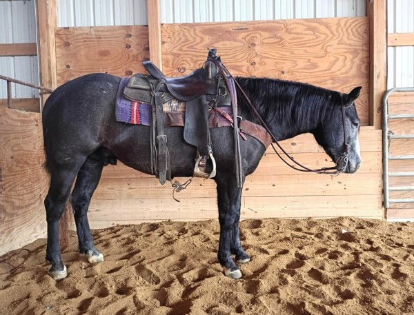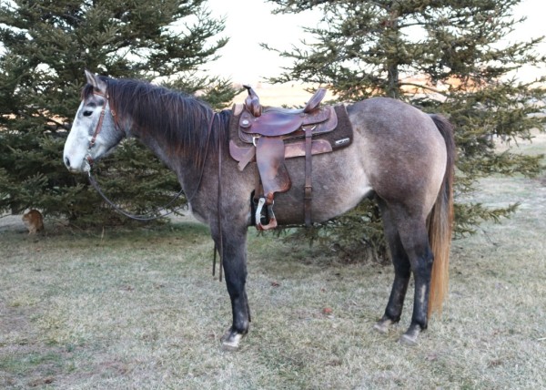 Storm is a 4 year old grey gelding standing approximately 16 hh. He has recently had 60 days of professional training. Storm is quiet and gentle. He is riding around nicely and is ready to go any direction you please. For more information contact Teresa at (563) 221-1245.